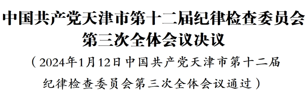 中国共产党天津市第十二届纪律检查委员会第三次全体会议,于2024年1月12日举行。出席这次全会的有市纪委委员41人,列席175人。