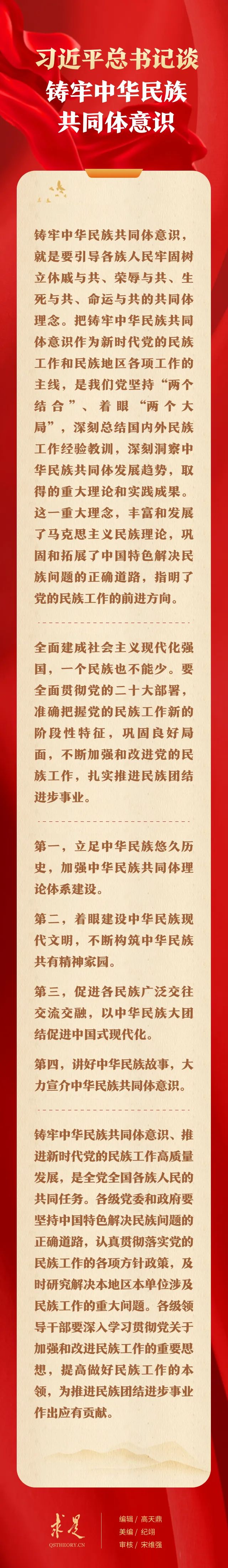 2月1日出版的第3期《求是》杂志刊发习近平总书记重要文章《铸牢中华民族共同体意识推进新时代党的民族工作高质量发展》。在这篇重要文章中,习近平总书记深入总结新中国成立以后特别是新时代以来民族工作的重大成就,就进一步铸牢中华民族共同体意识、推进新时代党的民族工作高质量发展作出深刻论述、提出明确要求,为做好新时代党的民族工作和民族地区各项工作提供了根本遵循。