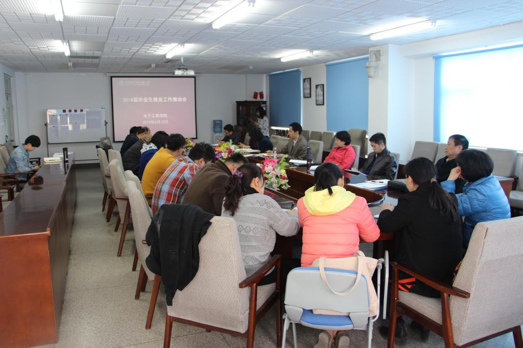 在机电楼326会议室召开2016届毕业生就业工作推动会。院领导、各系主任、毕业班班主任老师一同参加了会议。会议由院党委副书记刘娜主持。