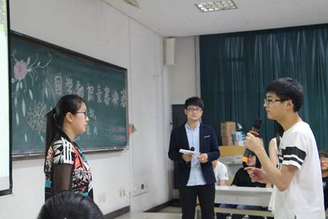 本次竞赛分为初赛和决赛两部分。初赛以笔试的形式开展,在70多报名选手中选拔前16名进入决赛,以抽签的方式分为四个小组。决赛部分三个环节:第一环节“我爱记诗词”,四组轮流回答屏幕中诗词句;第二环节“我说你猜” 根据屏幕显示的成语国学名人或成语,一人做动作,一人猜;第三环节“国学抢答”为个人赛,每位选手自由抢答,题目涵盖经典古诗词、国学常识等,也有“六有”大学生等社会主义先进文化。现场气氛热烈,掌声不断。经过激烈比拼,电信1602骆佳俐和应电1611胡俊辉获得一等奖。