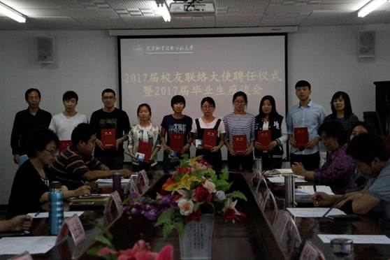 校友联络大使主要职责》,对校友联络大使的权利和义务进行了详细介绍。学院领导、各系(部)主任共同为学院28位校友联络大使颁发了聘书和学院纪念品。