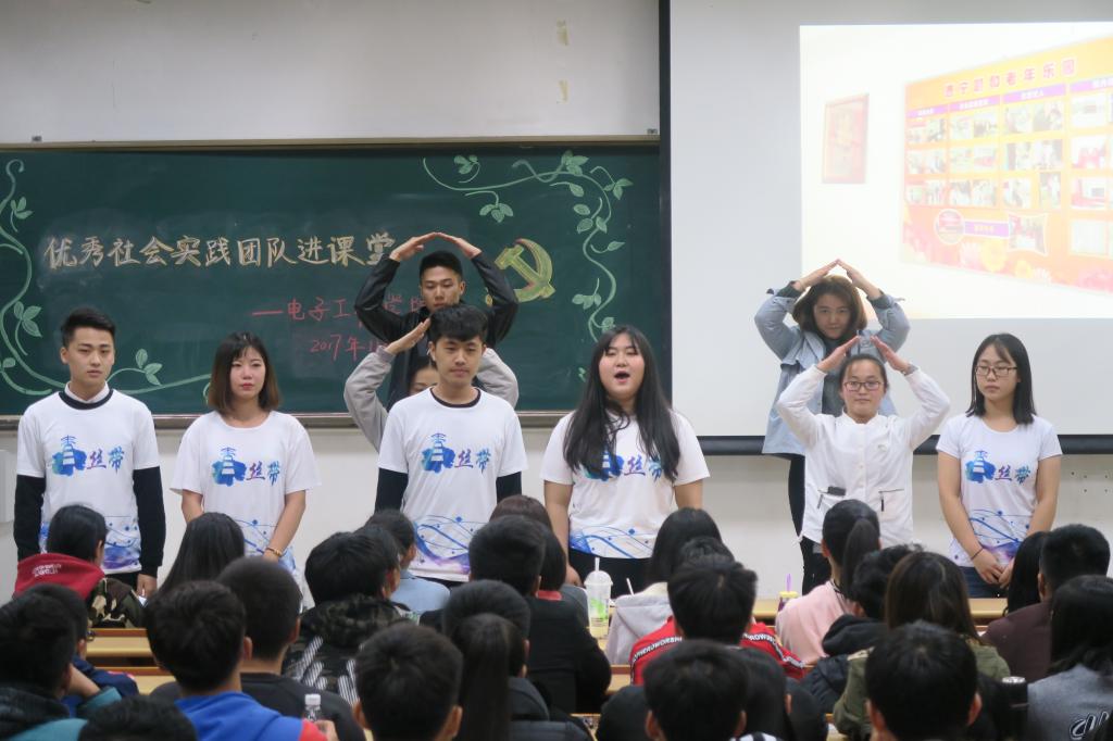 举办“走进新生课堂”系列活动,分别开展党员先锋进课堂、优秀社会实践团队进课堂、科技精英进课堂,2017级新生全体参加。