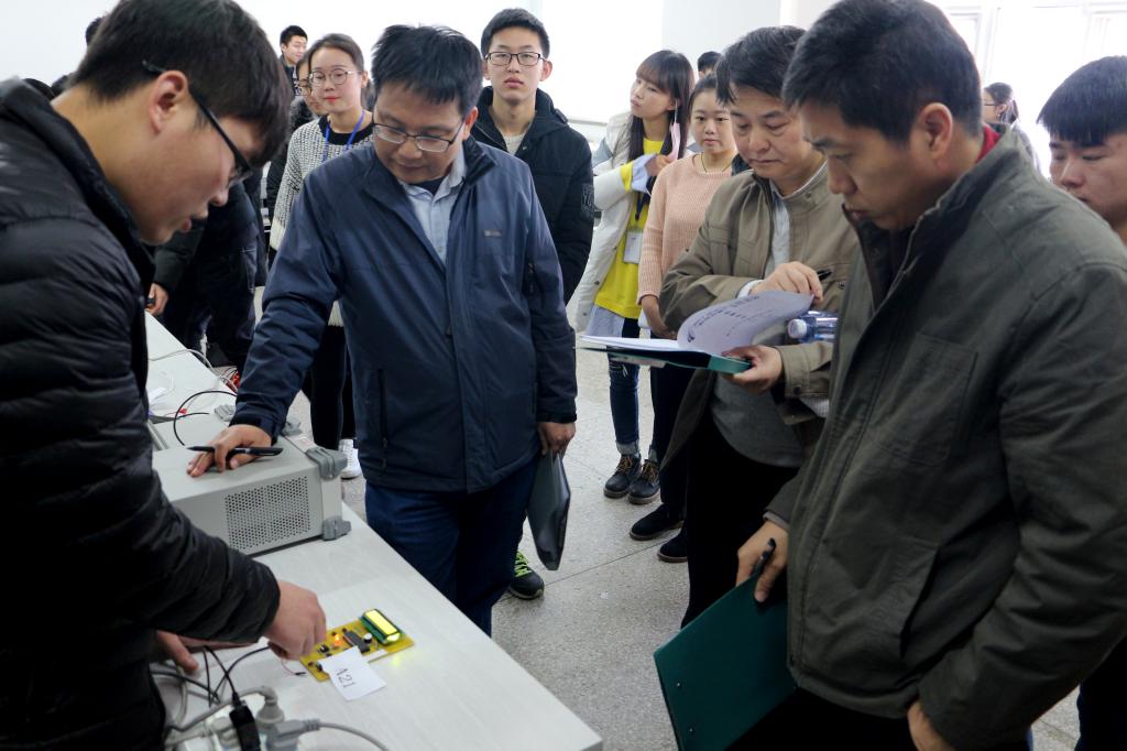 评委老师围绕作品原理、电子原件名称及工作原理、电路组成、实际应用等方面对参赛选手进行提问,并根据参赛作品创新性、科学性、实用性、互动性、美观性,结合参赛论文进行公正评价。经过激烈角逐,如意智能垃圾桶、频率显示仪和智能车位锁分别获一等奖。