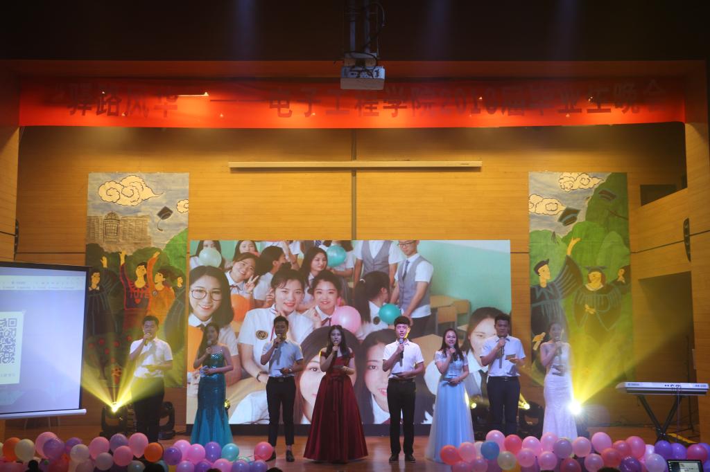 晚会以党委副书记和辅导员老师的舞蹈视频拉开晚会序幕,欢乐气氛带动整个会场。歌曲《当》唱出四年学习生活的情怀,使人回忆起轰轰烈烈青春岁月。电科1401班带来歌曲《你曾是少年》,希望毕业生牢记初心,少年依旧。小品《青春你好吗》,描绘出大学之初到毕业的生活回忆,温情满满。应电1313班为大家带来歌曲《方的言》,并将毕业前一幕幕做成背景视频,并且也收录了来自新疆支教同学的远方祝福,感动现场每位观众。诗朗诵《你们毕业了》,道出大学生活点点滴滴,回味悠长。微电1401班的话剧《有些毕业》,反映出毕业生毕业前的故事和心情,让人感同身受。最后辅导员老师与毕业生合唱《启程》,句句流露出老师对于毕业生的不舍与祝福,将现场气氛推向高潮。