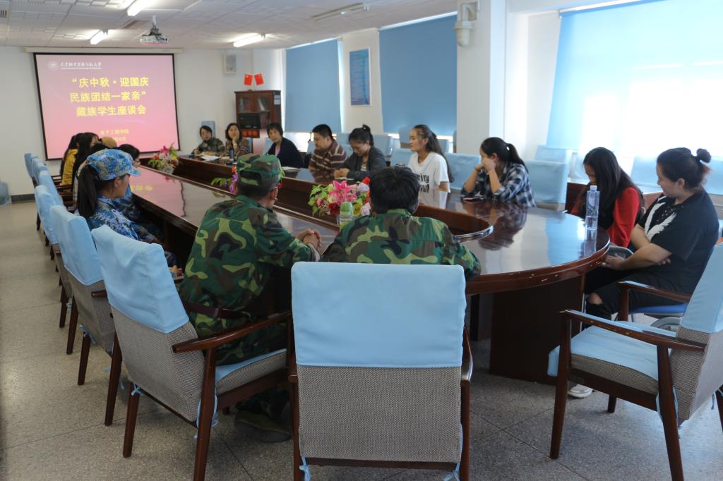 召开“庆中秋、迎国庆、民族团结一家亲”藏族学生座谈会,更好地促进民族大团结,加强对少数民族学生的思想政治教育,切实解决西藏少数民族学生生活、学习中的困难。院党委书记李春华、副书记刘娜、学工办主任陈云涛以及2016级、2017级、2018级17名藏族学生参加。