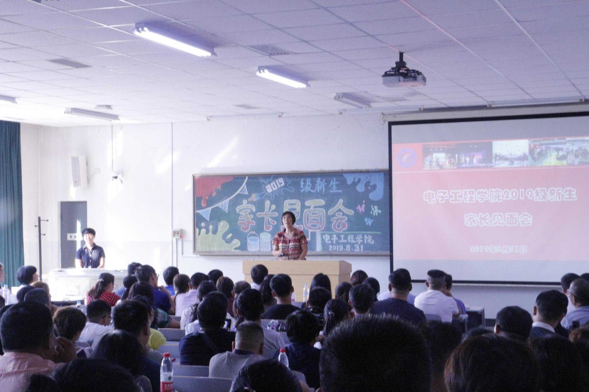 ,提出对新生的希望,希望大一新同学能努力拼搏,积极进取,充实大学生活。学生会主席电信1602班骆佳利同学与新生们分享了她的成长历程,2019级新生班主任、辅导员老师也分别从学业、社团活动、安全等角度对新生提出了具体要求与建议。在互动环节中,学院领导和老师们就家长咨询的有关问题进行了耐心细致的解答。