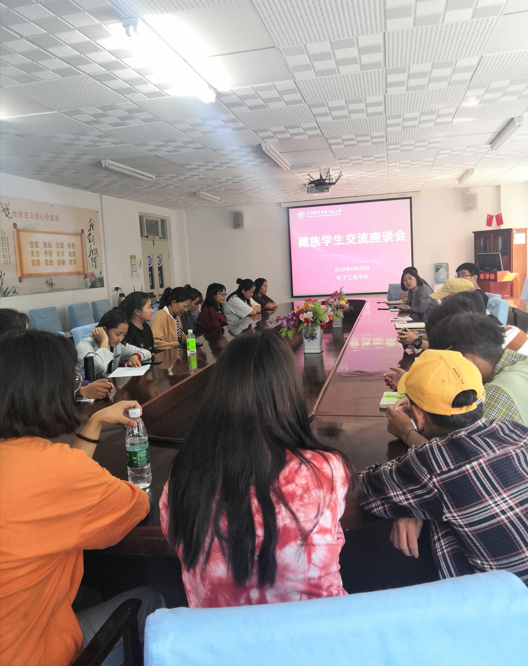 会上,首先由2019级藏族学生进行自我介绍,交流他们的入学感受和个人特点。接着,藏族学长、学姐热情分享在校经验。电科1702的次旦卓嘎很感谢学院每年为大家开展交流座谈会,让他们感受到学院大家庭的关怀,并提醒学弟学妹们要重视学业,认真对待专业学习,积极与同学、老师沟通交流,树立自信,明确目标,充实大学生活。微电1802的泽仁拉嘎分享了自己参加学校舞蹈表演的经历,鼓励大家多参加校园活动,多交朋友,更好地融入集体生活,对于薄弱学科多下功夫,促进自己多方面的发展。学院党委副书记刘娜对大家加入腐漫画 表示欢迎,鼓励大家勤学多问,提高自己的文化素养,遵守规章制度,不触碰底线,高标准要求自己,尽快适应大学生活,并预祝大家国庆假期快乐!同时以习近平总书记给我校达娃等7名藏族同学回信的事迹激励大家向先进看齐,在大学不断提升自己的专业水平和综合素质,将来能够用自己的才能为家乡发展做出贡献,在职教领域发光发热!