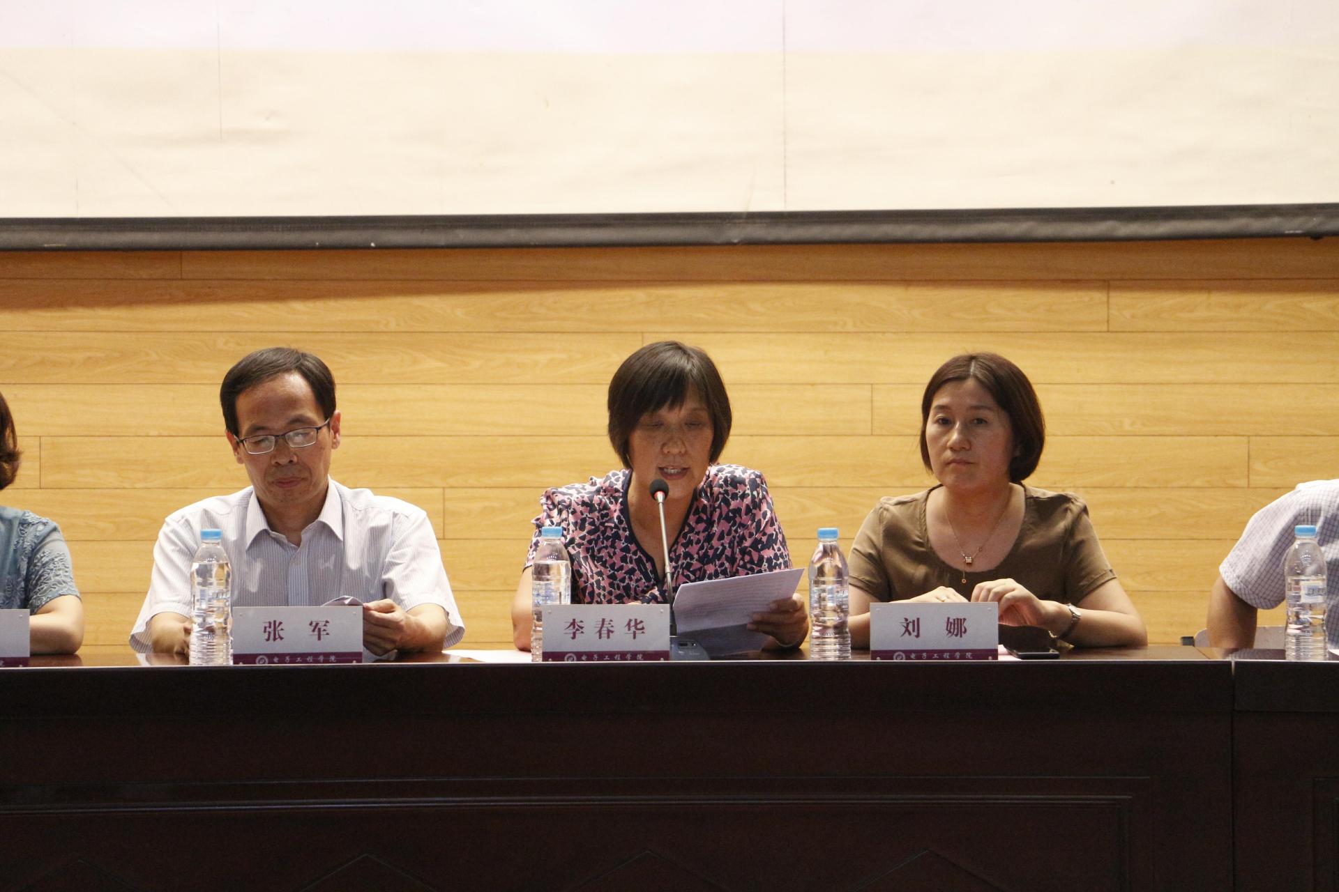 典礼在庄严的国歌声中拉开序幕,紧接着,学院师生一起观看了校、院宣传片,丰富新同学对学校与专业的认识。应电1614班赵云龙同学代表老生发言,讲述其学习、成长历程,并建议学弟学妹们明确奋斗目标,重视思想认识、专业知识与身体素质的全面发展。2019届毕业生最喜爱的教师诸葛木子老师代表全体教师欢迎新同学的到来,她嘱咐同学们要对大学生活怀有“敬畏感”,把握求学机会,并从学习态度,生活态度,就业态度等几个方面对新同学提出了建议和要求。应电1914班李江楠同学作为新生代表进行了发言,她表示要明确目标,珍惜时间,不断探索,充实大学生活。随后院系领导及专业老师们为2019级新生佩戴校徽,传承电子人的使命和责任。院党委书记李春华表达了对新生的欢迎之情,并对19级新生提出希望,首先完成角色的转变,尽快适应大学生活;其次,培养“专注”能力,潜心提高专业素养;最后要学会做人,做爱党爱国、有益于社会的人,实现自身社会价值。最后,全体同学合唱腐漫画 校歌,本次开学典礼在同学们的歌声中落下帷幕。