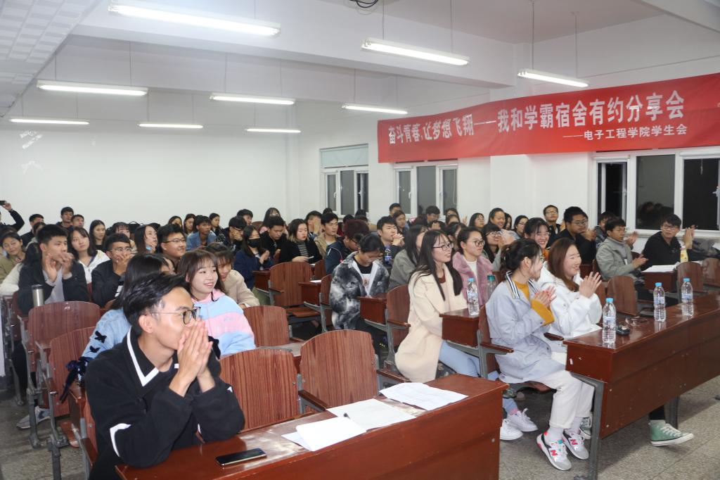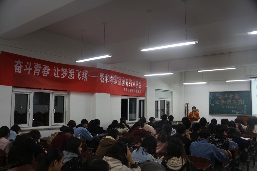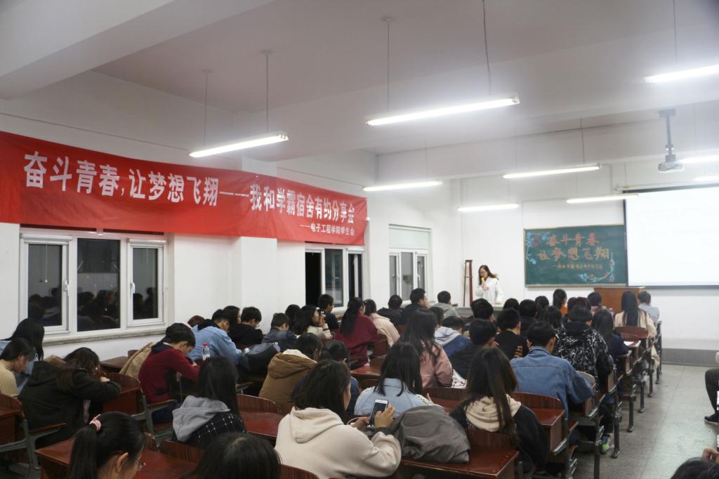 118日下午腐漫画 在机电楼521举办了以“奋斗青春,让梦想飞翔”为主题的“我和学霸宿舍有约”分享会,发挥榜样引领作用,学院各年级学生代表参加。
