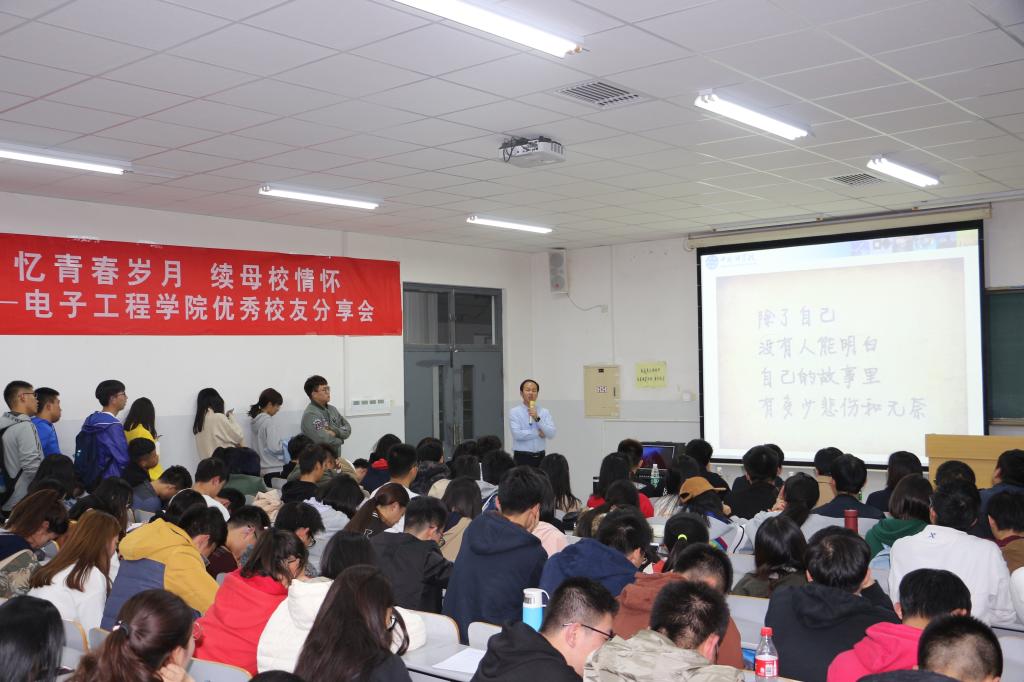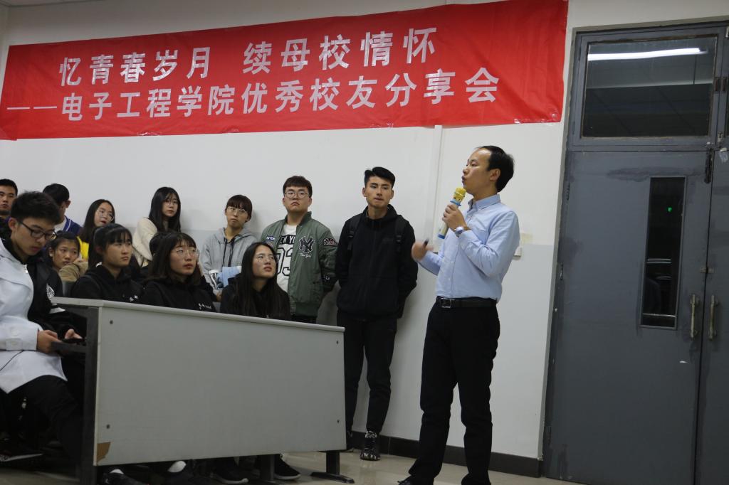 1027日晚,腐漫画 在第三教学楼302举办以“忆青春岁月,续母校情怀”优秀校友分享会,邀请2007届通信工程专业毕业生、现工作于中国科学院遥感与数字地球研究所薛国梁担任主讲,院党委副书记刘娜、学院辅导员、学院研究生、本科生近200人参加。