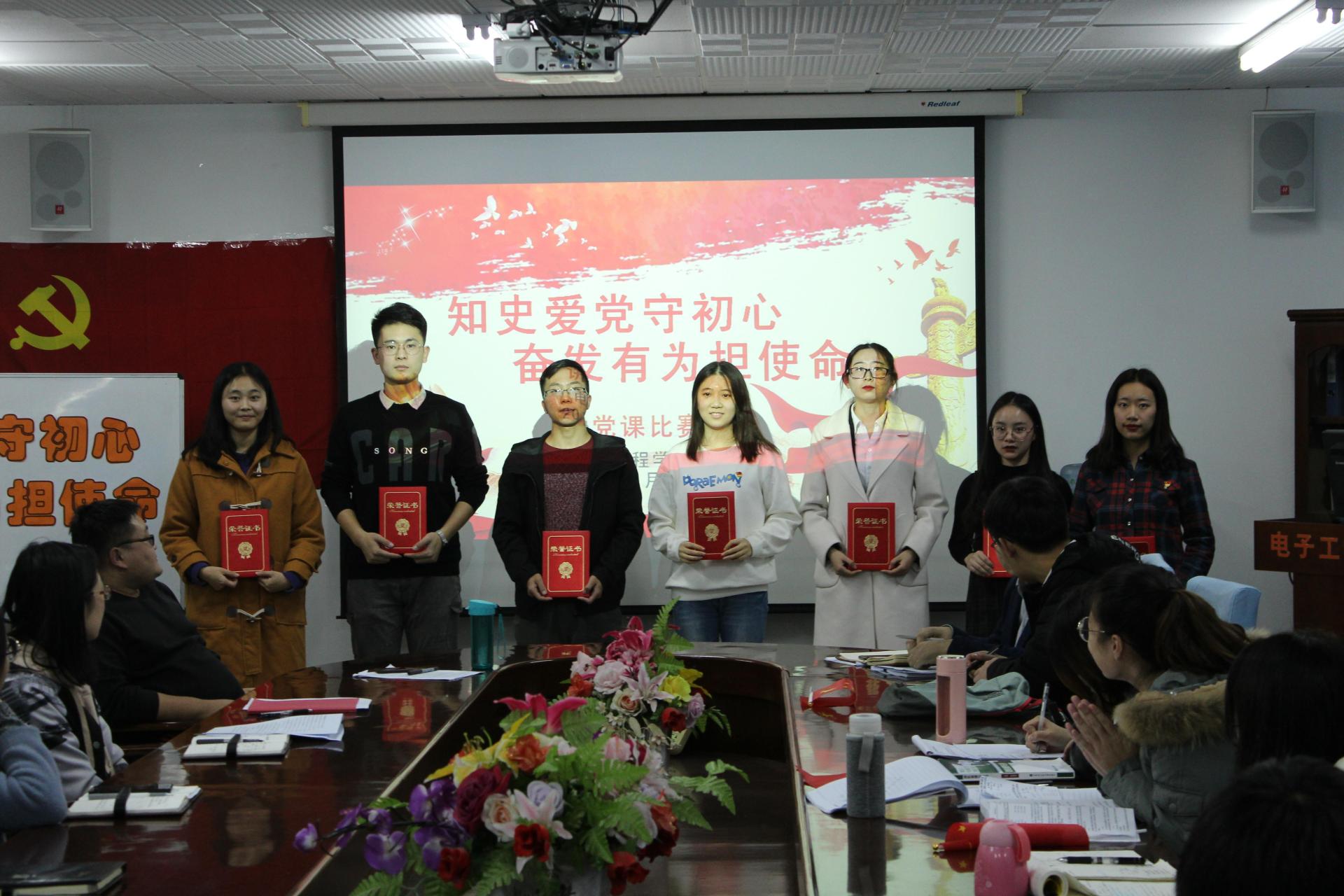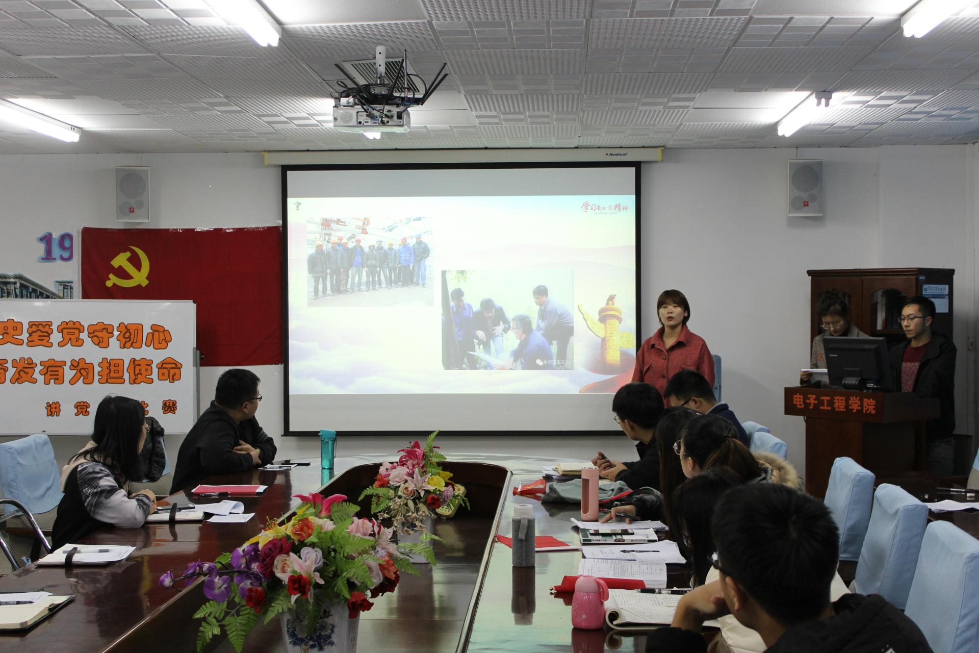 本次比赛以支部为单位,共有七支参赛队伍。各主讲人结合 PPT、视频、话剧等形式,展现了党的光辉历史和如今的伟大成就。首先上场的研究生学生党支部,以“铸大国重器,圆强国梦想”为主题,回顾了新中国成立以来的阅兵仪式,令人感慨万千,紧接着从港珠澳大桥修建的不易,展现了建设者们坚持不懈的精神,发人深省。第二个出场的通信学生党支部,带我们深入了解辽宁舰背后的泪水与感动。电子科学与技术学生党支部,重温了“爱国三问”,在浓烈的爱国精神感染下,现场气氛高涨。应用电子学生第二党支部,让我们认识到颜色革命的危险性,必须坚定“四个自信”不动摇。电信工程学生党支部,以情景剧再现新中国成立以来的外交历程,在场人员深感今天的大国外交来之不易。微电子学生党支部,以邓稼先及其妻子的视角演绎了第一代开国元勋们舍己奉公,无私为国的伟大情操。最后,应用电子学生第一党支部讲述了西南联大的大学精神:学术自由,星星之火,可以燎原,在场师生党员深受鼓舞。最终微电子学生支部获得一等奖。