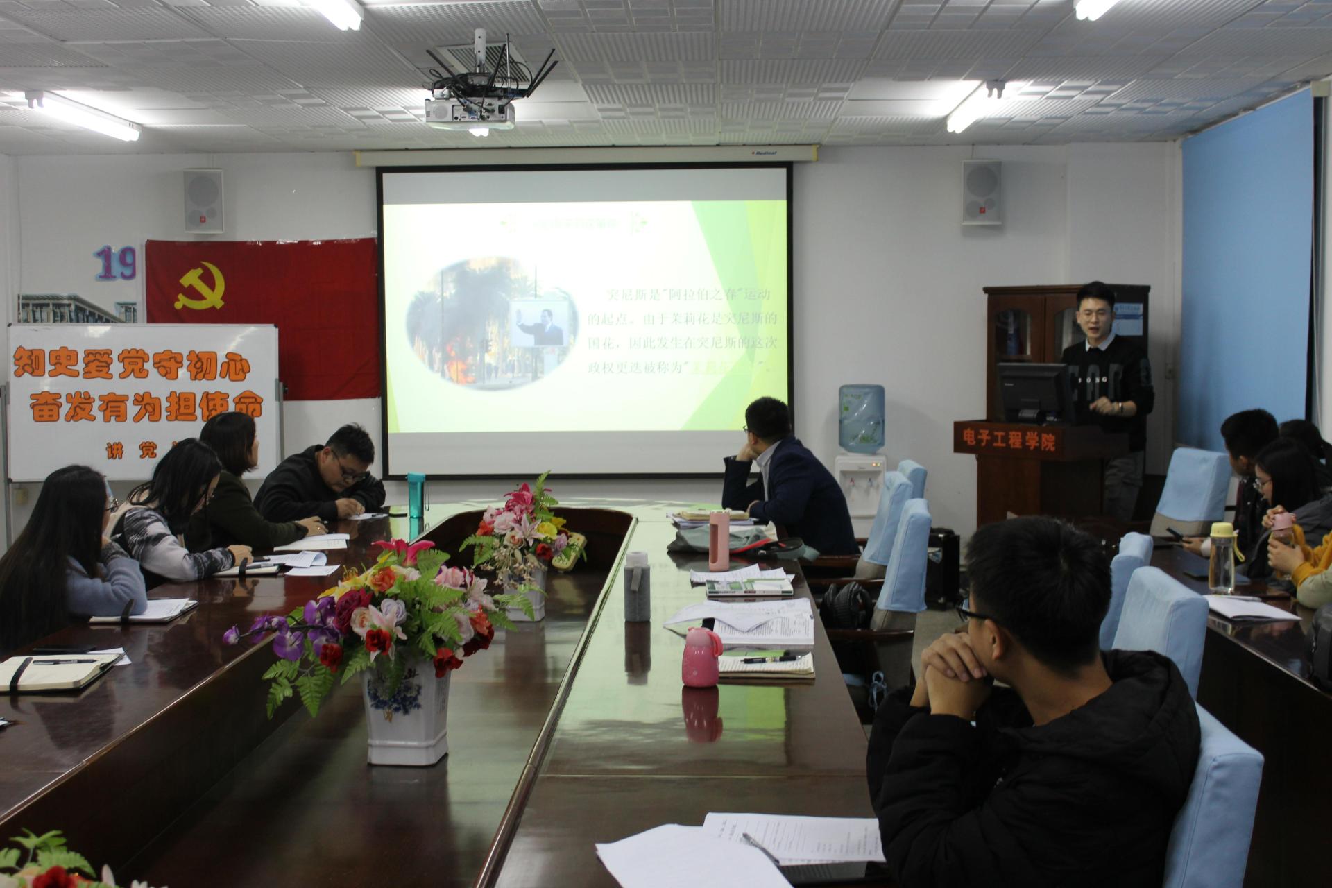 11 21日下午,腐漫画 党委组织开展了主题为“知史爱党守初心,奋发有为担使命”的讲党课比赛。旨在深入学习贯彻习近平新时代中国特色社会主义思想和党的十九大精神,认真学习贯彻落实十九届四中全会精神,进一步检验“不忘初心、牢记使命”主题教育的学习成果。院党委副书记刘娜、各学生党支部书记以及学生党员参与本次活动。