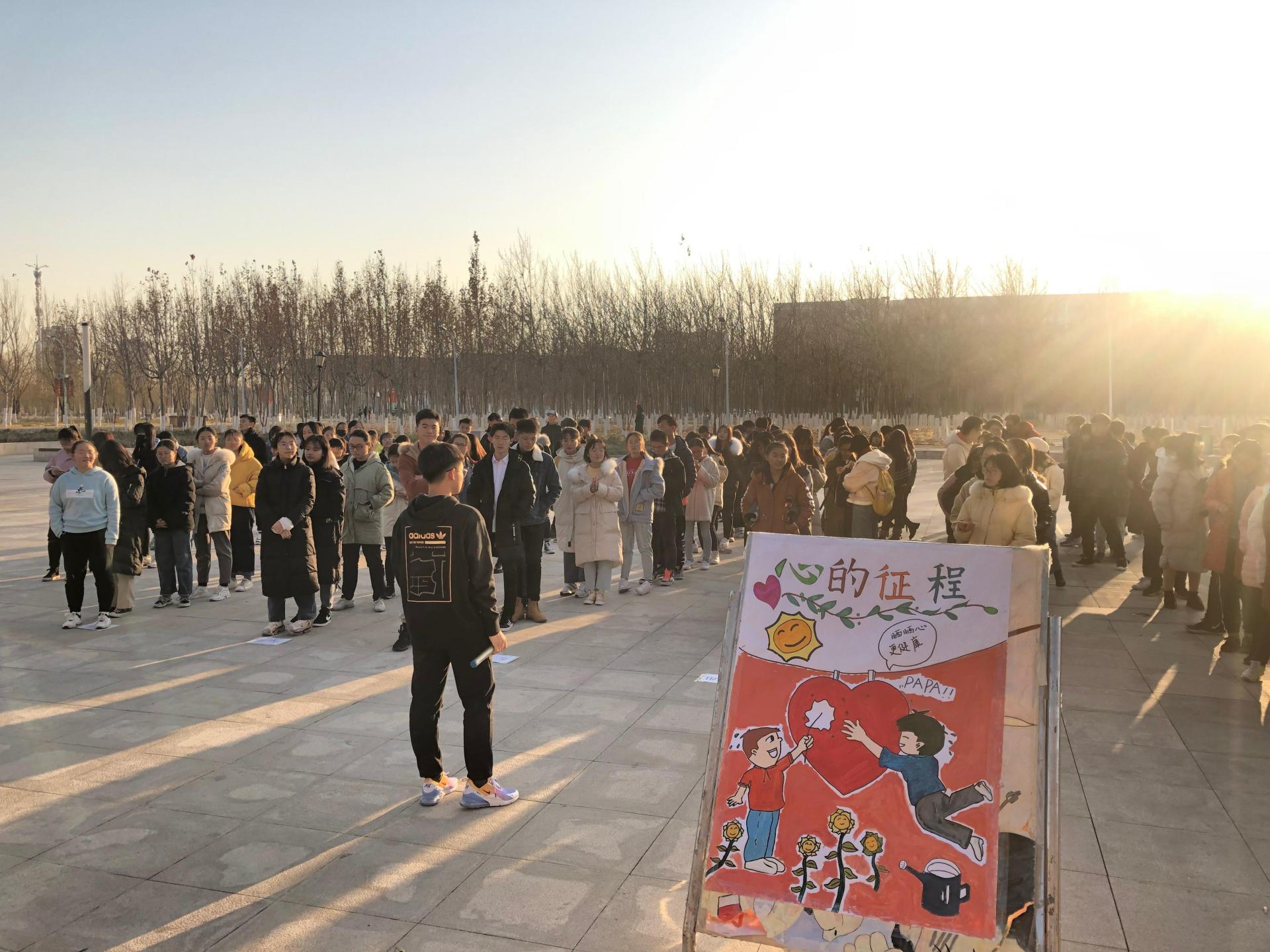 “沐心协会”在东区镜柳湖广场,举办“心的征程”心理团辅活动,旨在提高同学们的心理健康水平与人际交流能力,学院120余名同学参加。