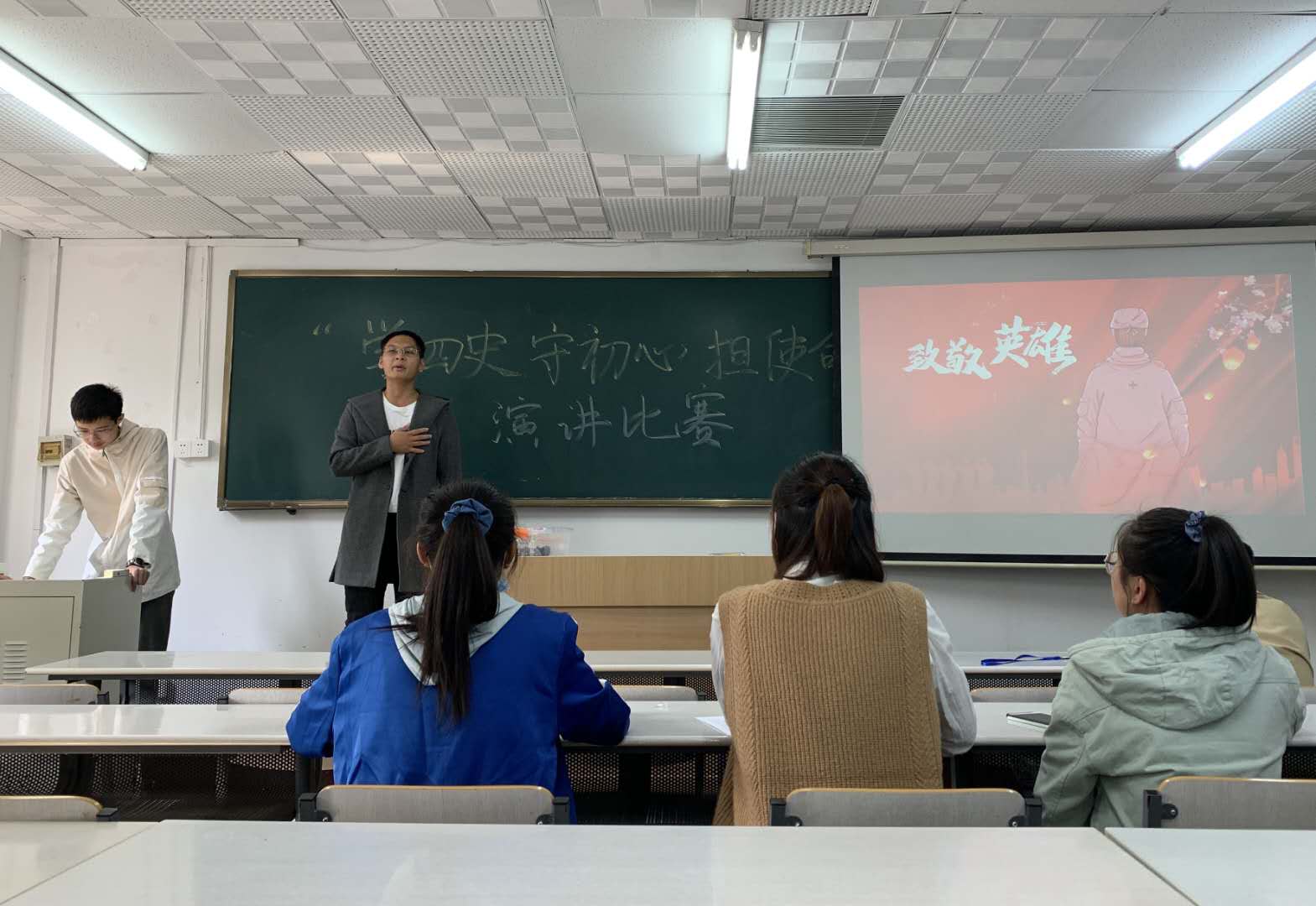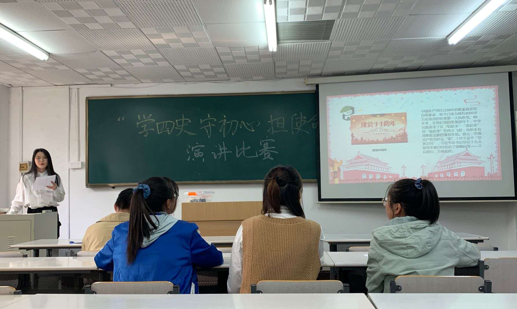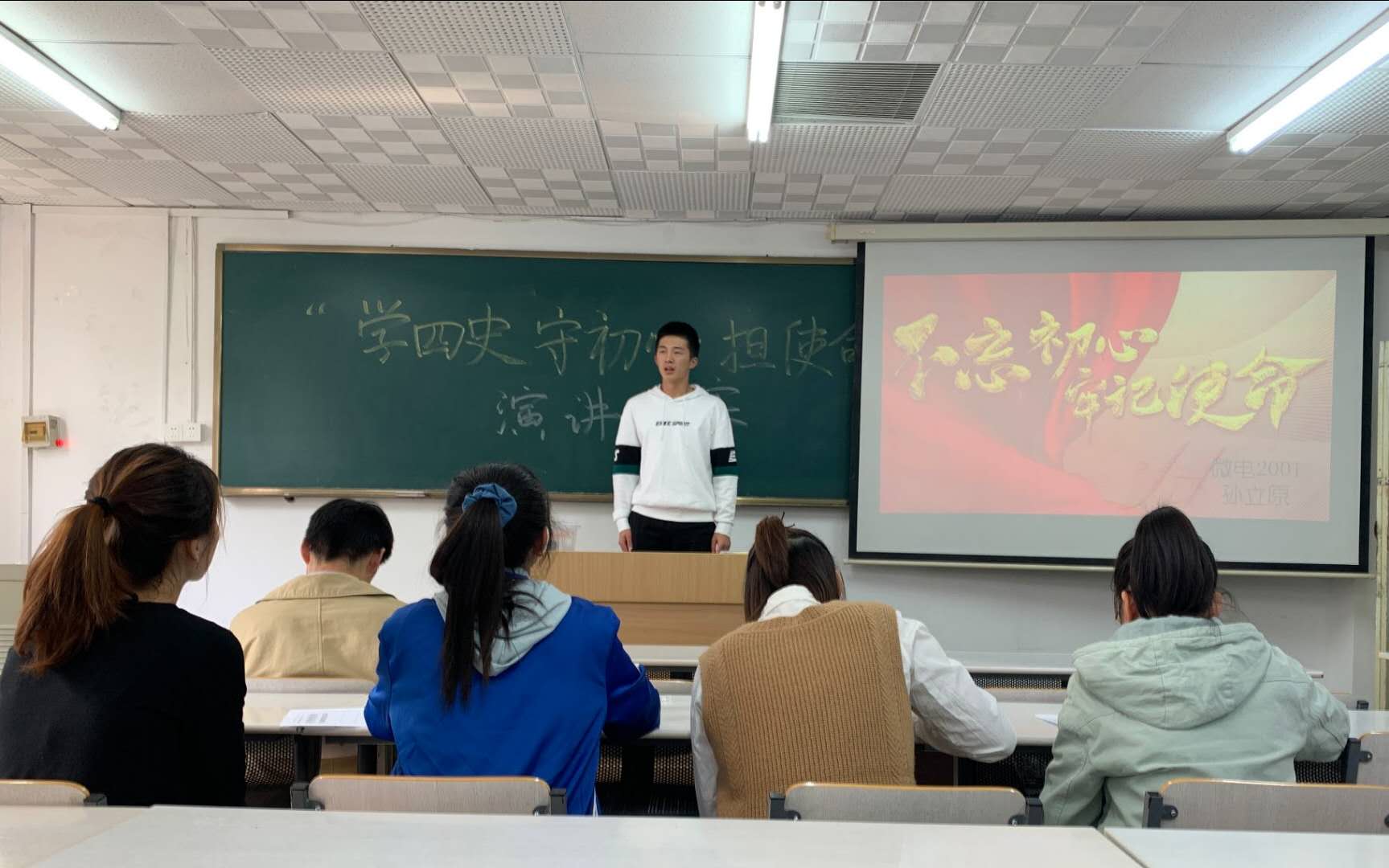 在机电楼举办以“学四史 守初心 担使命”为主题的新生演讲比赛。在2020这个特殊的年份里,同学们结合自己疫情防控期间的见闻和入学体验,学习四史知识、抒发爱国热情、彰显青春风采。此次比赛由2020级新生参加。