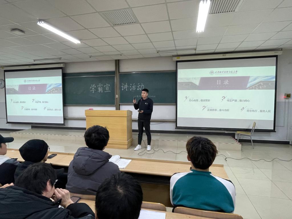 于12月2日至12月3日举办“筑梦扬帆,你我同行”学霸宣讲活动。学霸宣讲团成员由国家奖学金、人民政府奖学金及王克昌奖学金获得者组成,各位成员进入2021级新生班级宣讲,为大一新生解疑答惑,分享学习经验。