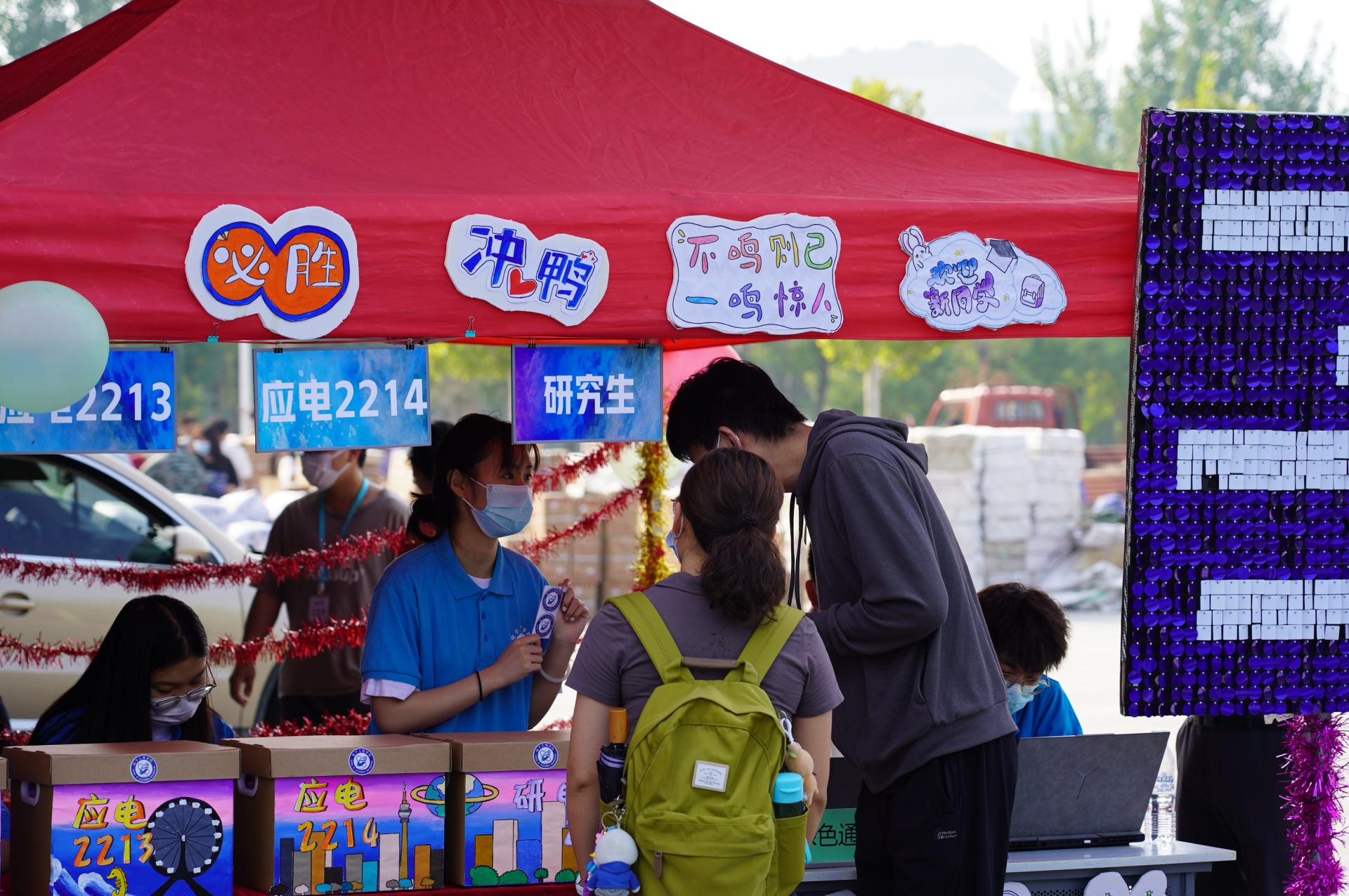 体育馆外、公寓楼前,院旗迎风招展,身着红色马甲、蓝色马甲的志愿者们在校园里来回穿梭,耐心细致的帮助新生们指路、引导,形成了一道道靓丽的风景线。“我是党员,我来帮你”,“我是志愿者,我来帮你”,连每一个路人都变得温柔可爱,不厌其烦的给予新生们力所能及的帮助,一句句“我帮你”,将电子人的心凝聚到了一起。