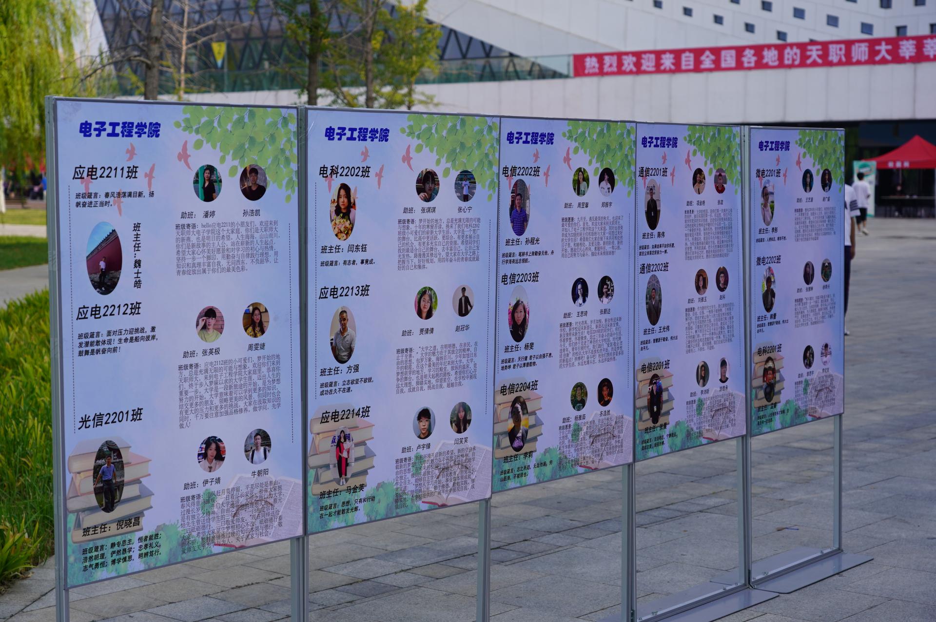 办理好报到手续后,新生们在迎新展板前定格当下的喜悦。