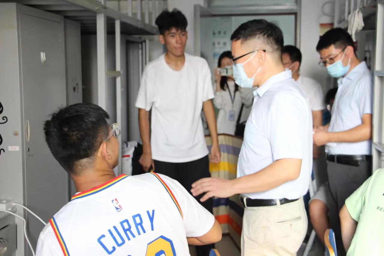 当天下午,学院领导班子、班主任老师们走进宿舍关心慰问新生,老师们热情的与新生进行沟通交流,了解关注新生的需求,为他们更好更快地适应大学校园新生活提供指导。