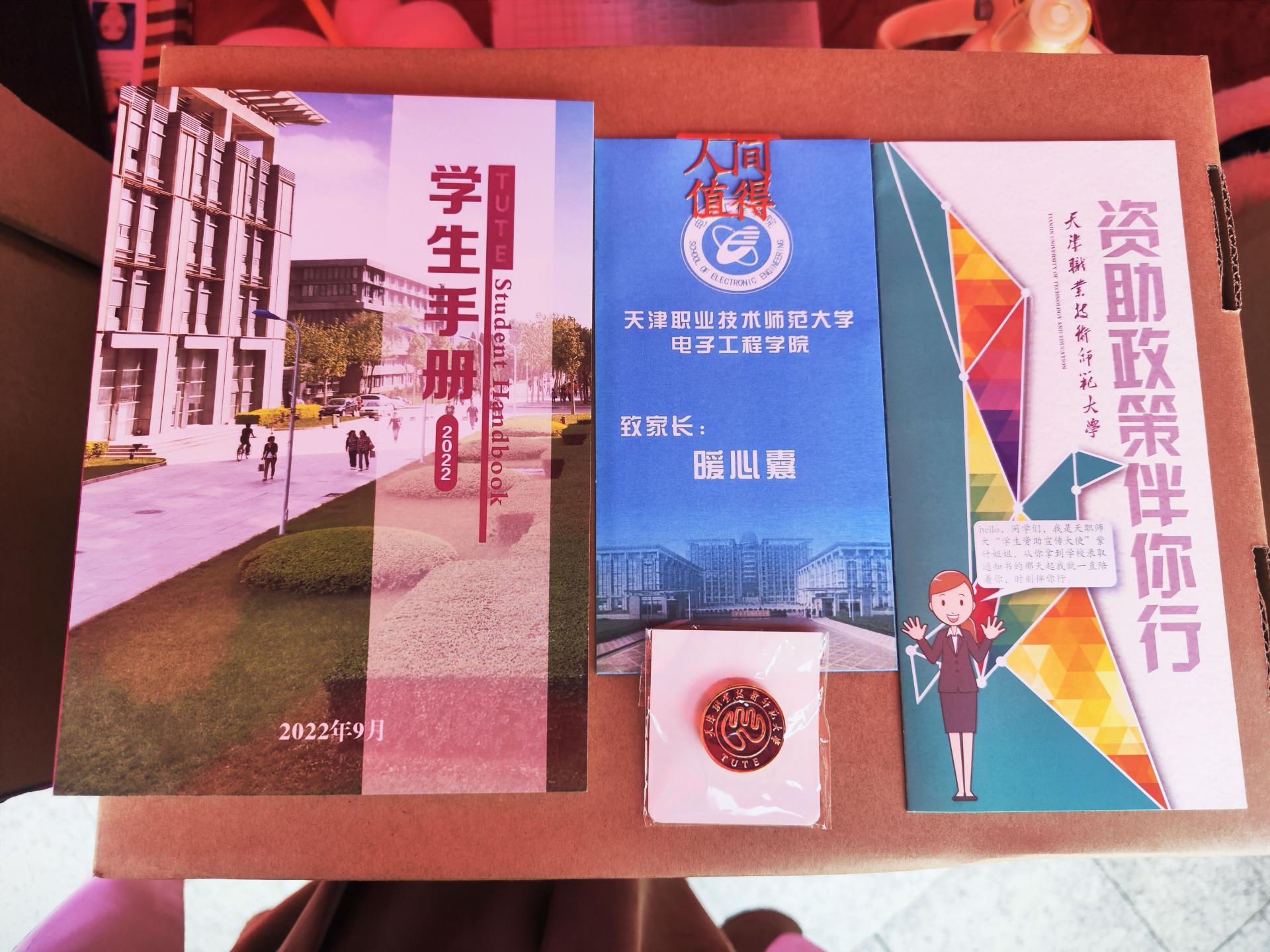 学院学生会成员及助理班主任们在迎新工作中积极主动,引导每一位电子“小萌新”顺利领取饭卡,文件袋、暖心卡片、学生手册、校徽……新生大礼包充满无限的惊喜。