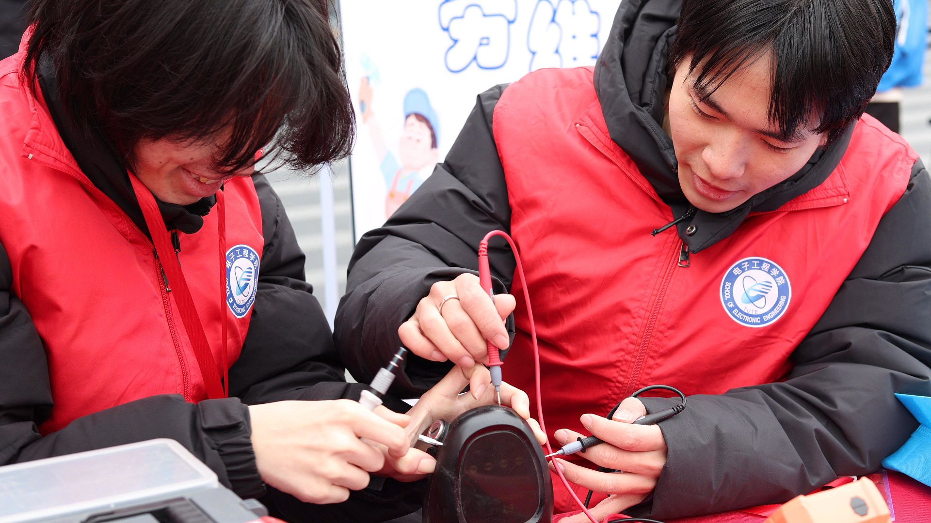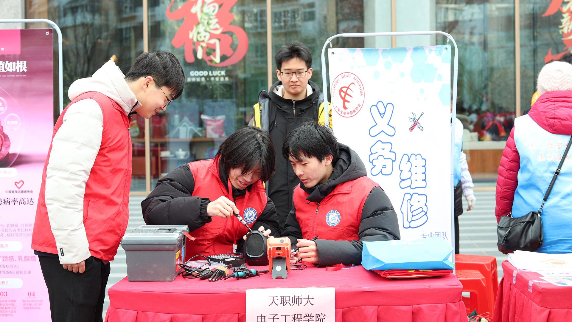 师生积极响应号召,于2025年3月2日奔赴双林街道中建理想城户外广场,踊跃参与“志”暖津南——津南区公益市集,开展了一场别开生面的义务维修志愿服务活动。本次活动由大学生电子创新协会指导教师张洋带队,16名学院学生志愿者满怀热忱地投入其中,以实际行动传承雷锋精神,展现天职师大学子的良好风貌。