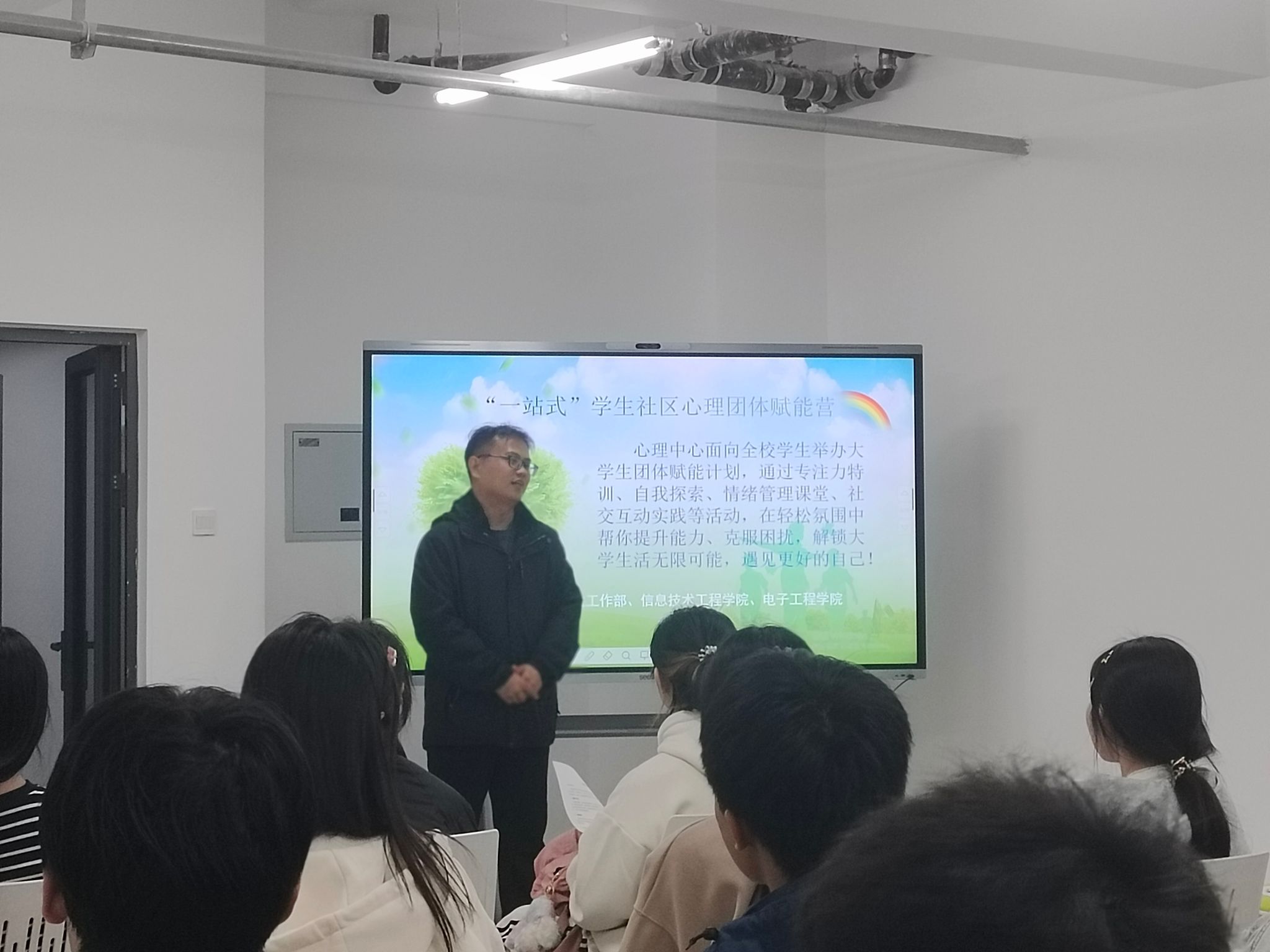 沐心协会主办,特邀学校心理健康教育中心教师车蕾蕾、雷明、李俊,联合职业教育学院心理专业研究生团队,以“正念”为内核,为2024 级光信专业学生打造了沉浸式心灵成长课堂,引领他们遇见更好的自己。
