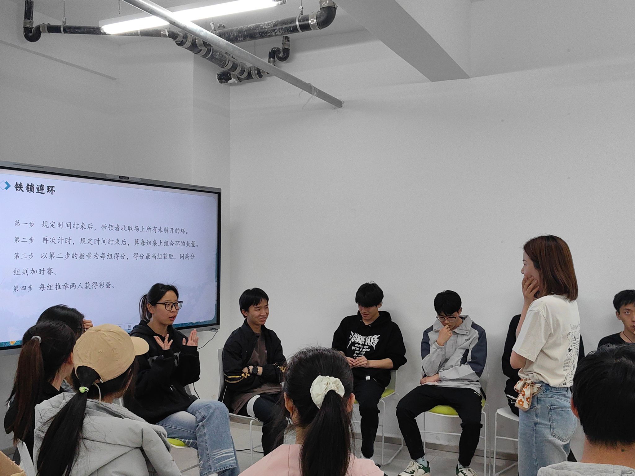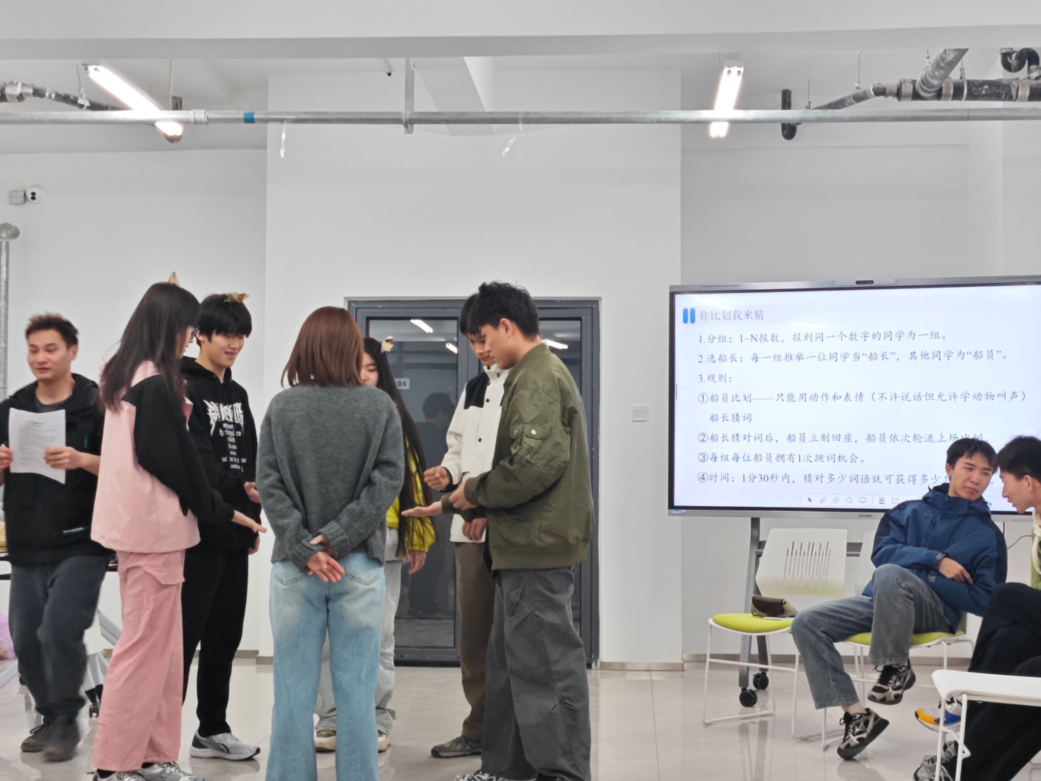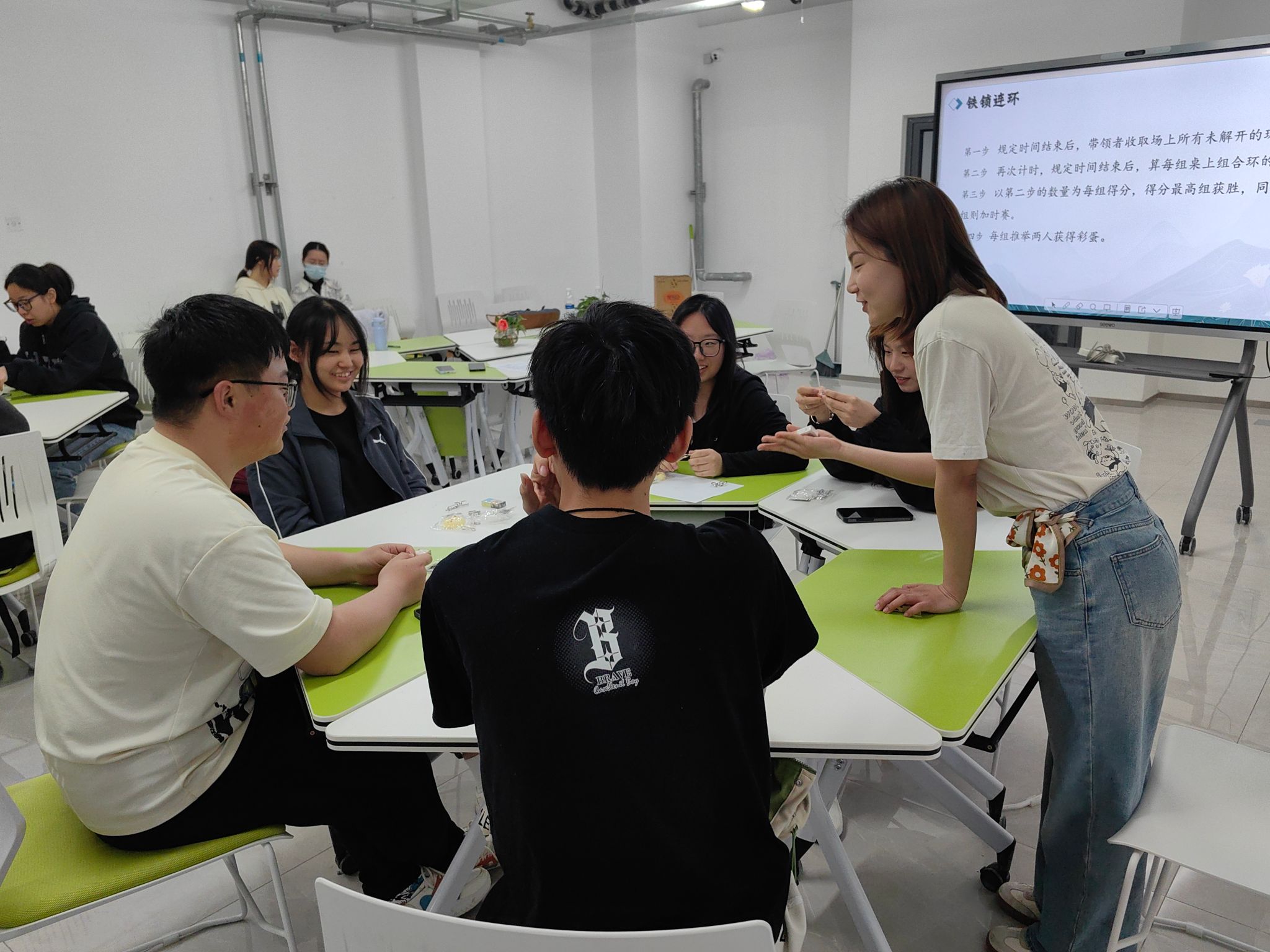 3月27日,同舟共济的活动场景为孤岛求生:学生们通过随机分组产生船长,带领船员通过“你比划我来猜”积累航行物资,获取额外奖励。在“报纸船舰”的挑战中,团队需随风浪折叠报纸,从踉跄失衡到默契配合,同学们在方寸报纸上领悟专注沟通与共担压力的团队智慧。正念环节引入“身体扫描技术”,通过渐进式肌肉放松与情景冥想,引导大家察觉困境中的自动化反应模式。