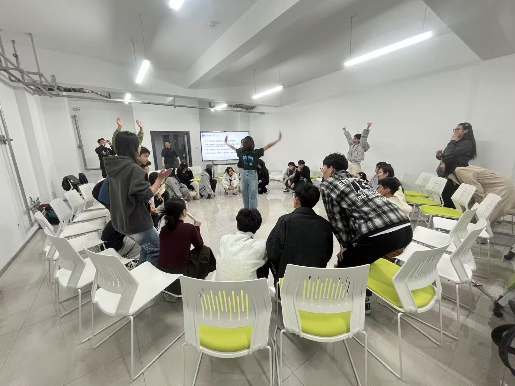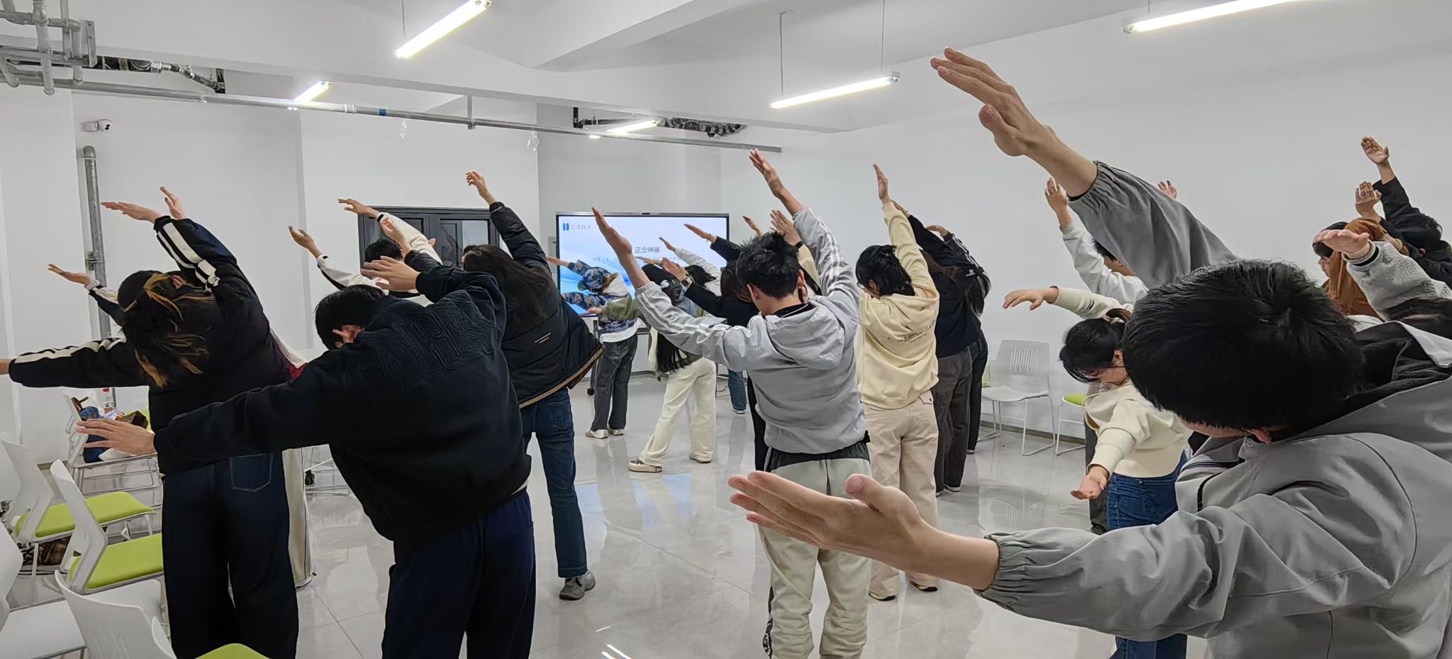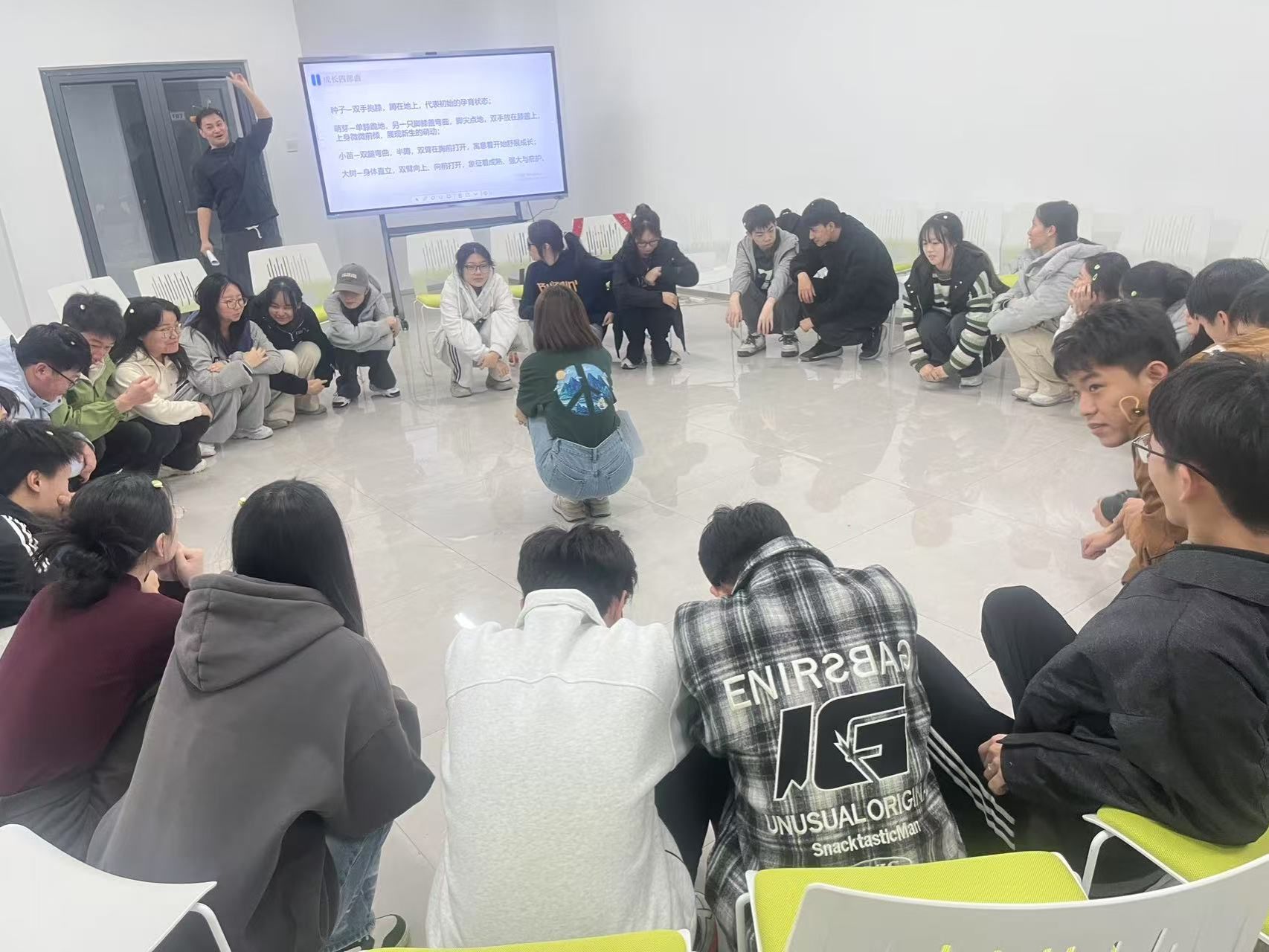 3月20日,延续首期活动建立的安全信任感,本期热身环节将呼吸融入到健心操中,将肢体运动与呼吸调节相结合,引导学生们在动态中感知身心联结。雨点变奏曲中,学生们通过动作幅度的变化细腻体验成长四部曲——从萌芽破土到参天大树的生命历程。随后的触碰彩蛋、野蛮生长等环节,通过情景模拟呈现人生路径的多样性,强化团队支持的力量。