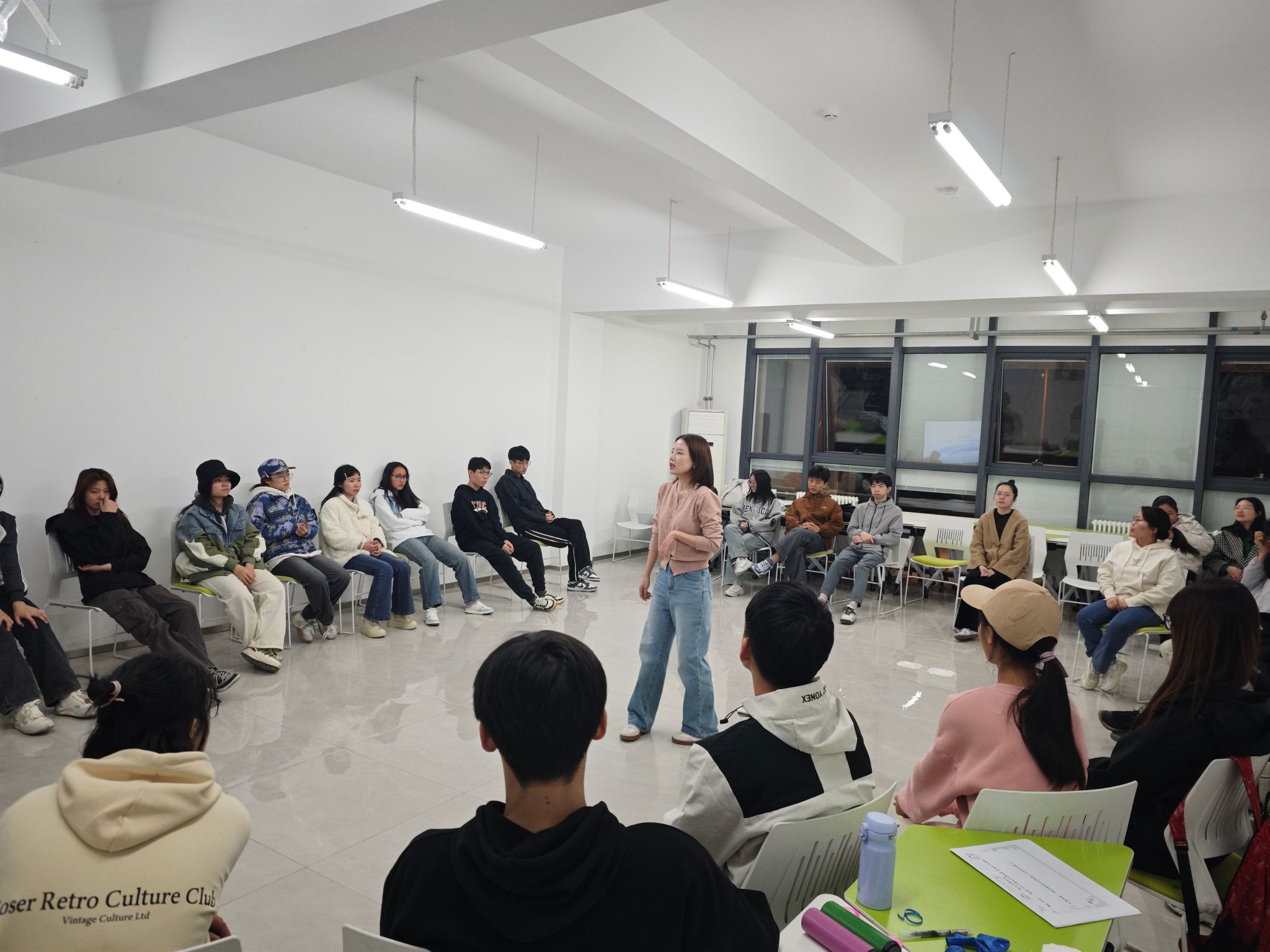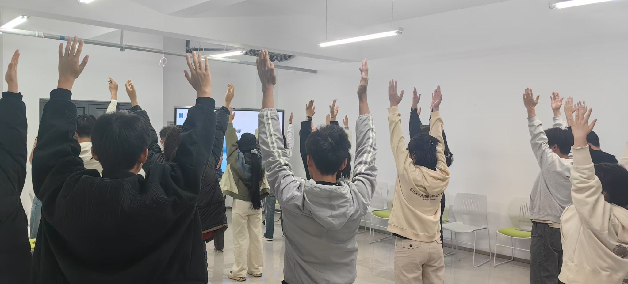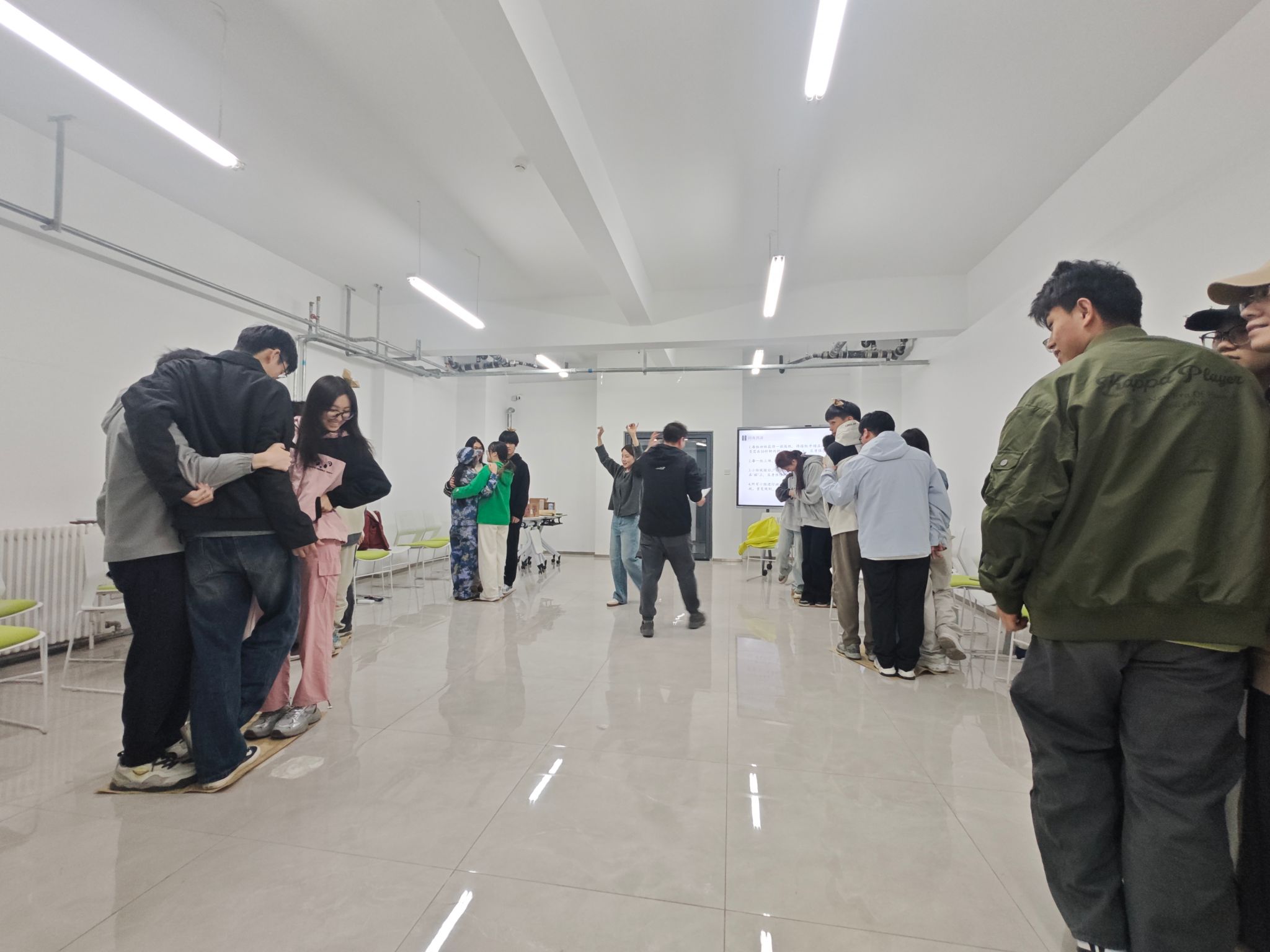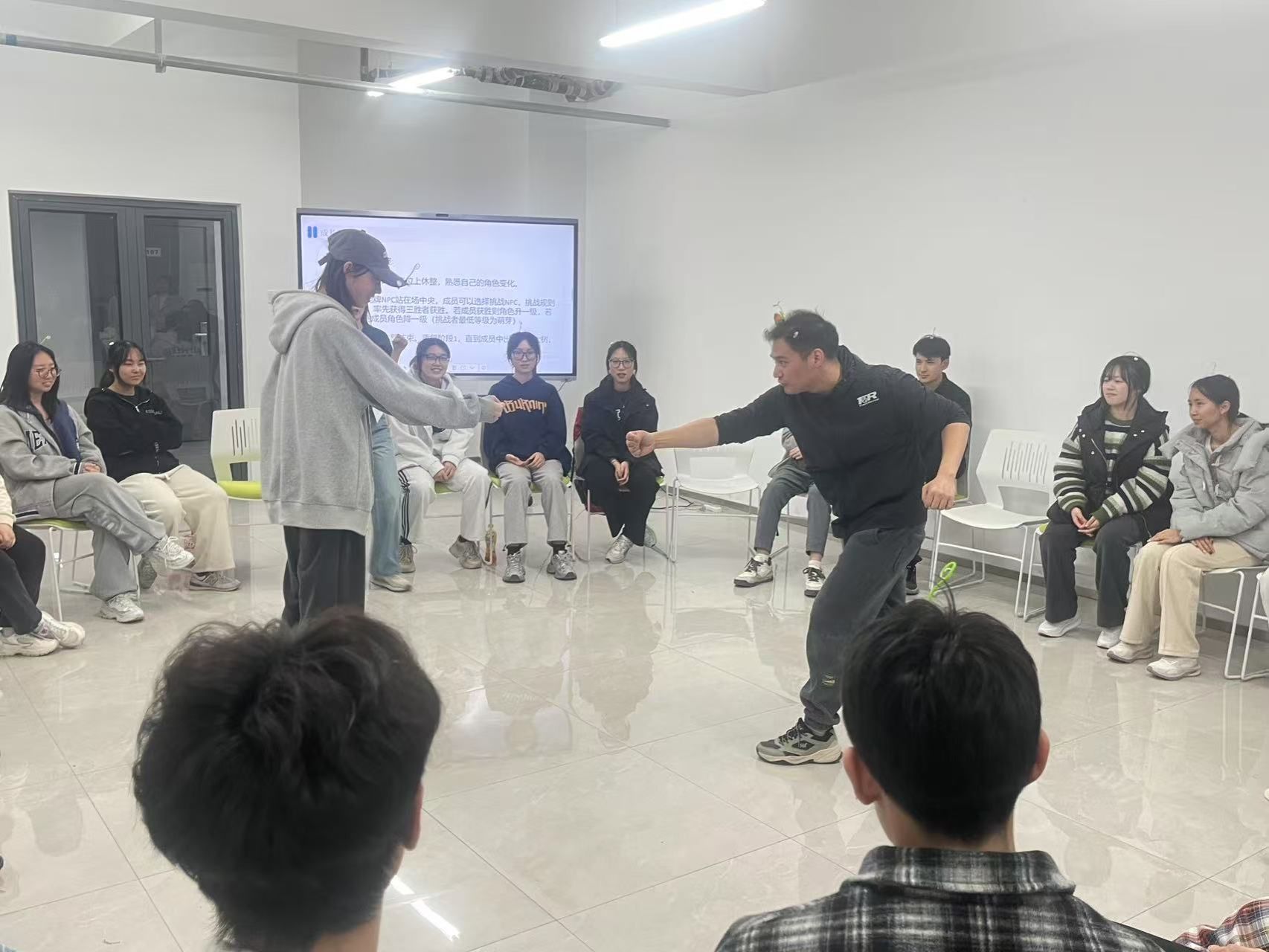 3月20日,延续首期活动建立的安全信任感,本期热身环节将呼吸融入到健心操中,将肢体运动与呼吸调节相结合,引导学生们在动态中感知身心联结。雨点变奏曲中,学生们通过动作幅度的变化细腻体验成长四部曲——从萌芽破土到参天大树的生命历程。随后的触碰彩蛋、野蛮生长等环节,通过情景模拟呈现人生路径的多样性,强化团队支持的力量。