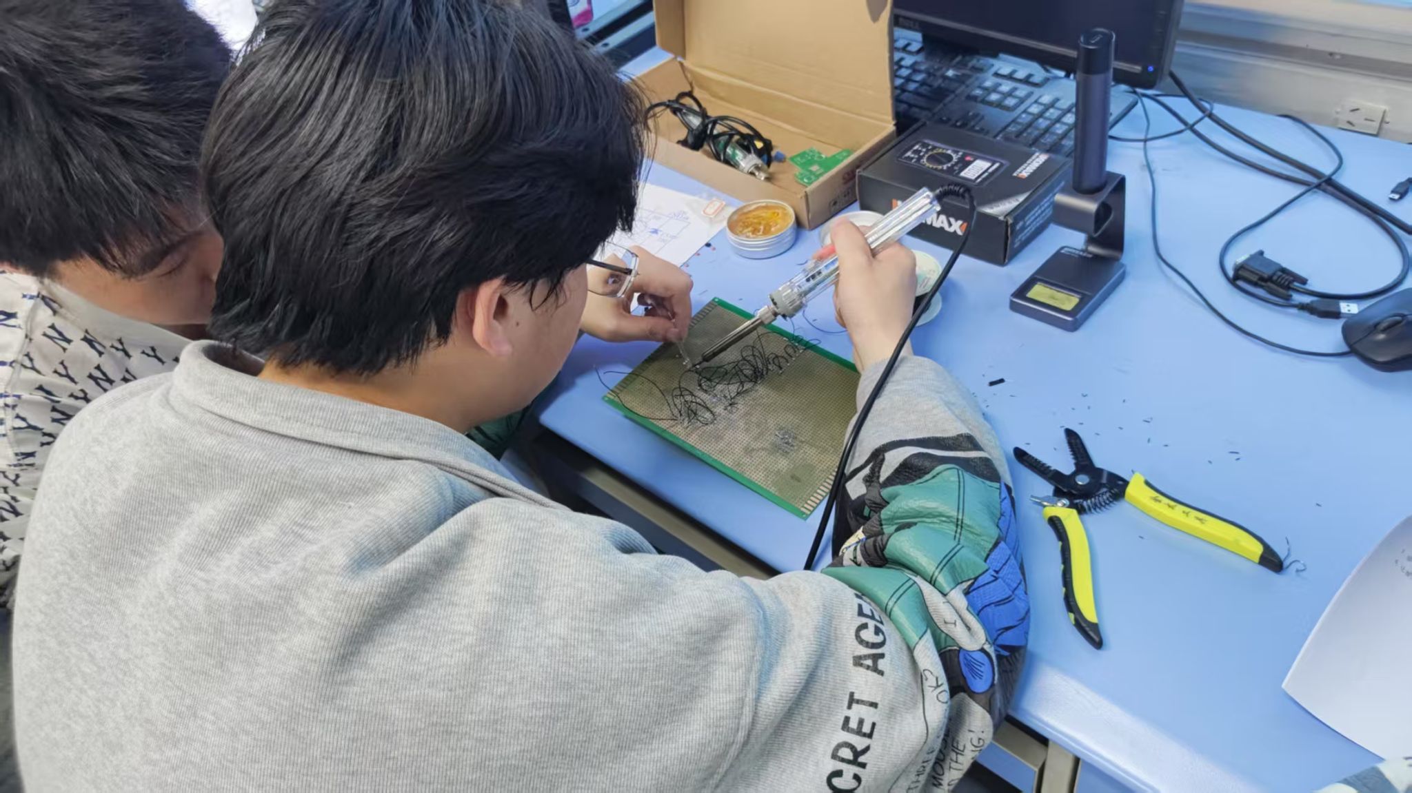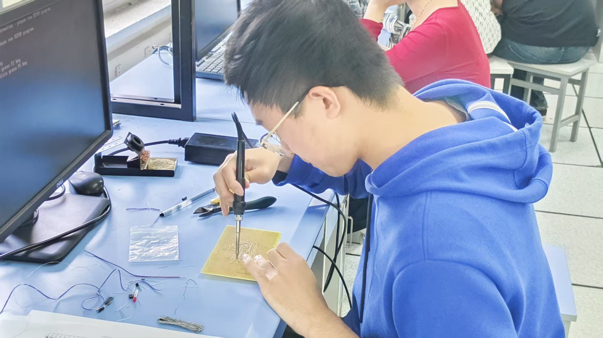 本次比赛吸引了60多名同学踊跃参与,现场气氛热烈。参赛选手来自学院不同专业和年级,他们带着扎实的理论知识和饱满的热情投入到比赛中。比赛过程中,选手们全神贯注,手中的焊枪精准地在电路板上舞动,将一个个微小的电子元件完美焊接。每一个焊点都凝聚着选手们的专注与努力,展现出他们对焊接技术的熟练掌握。