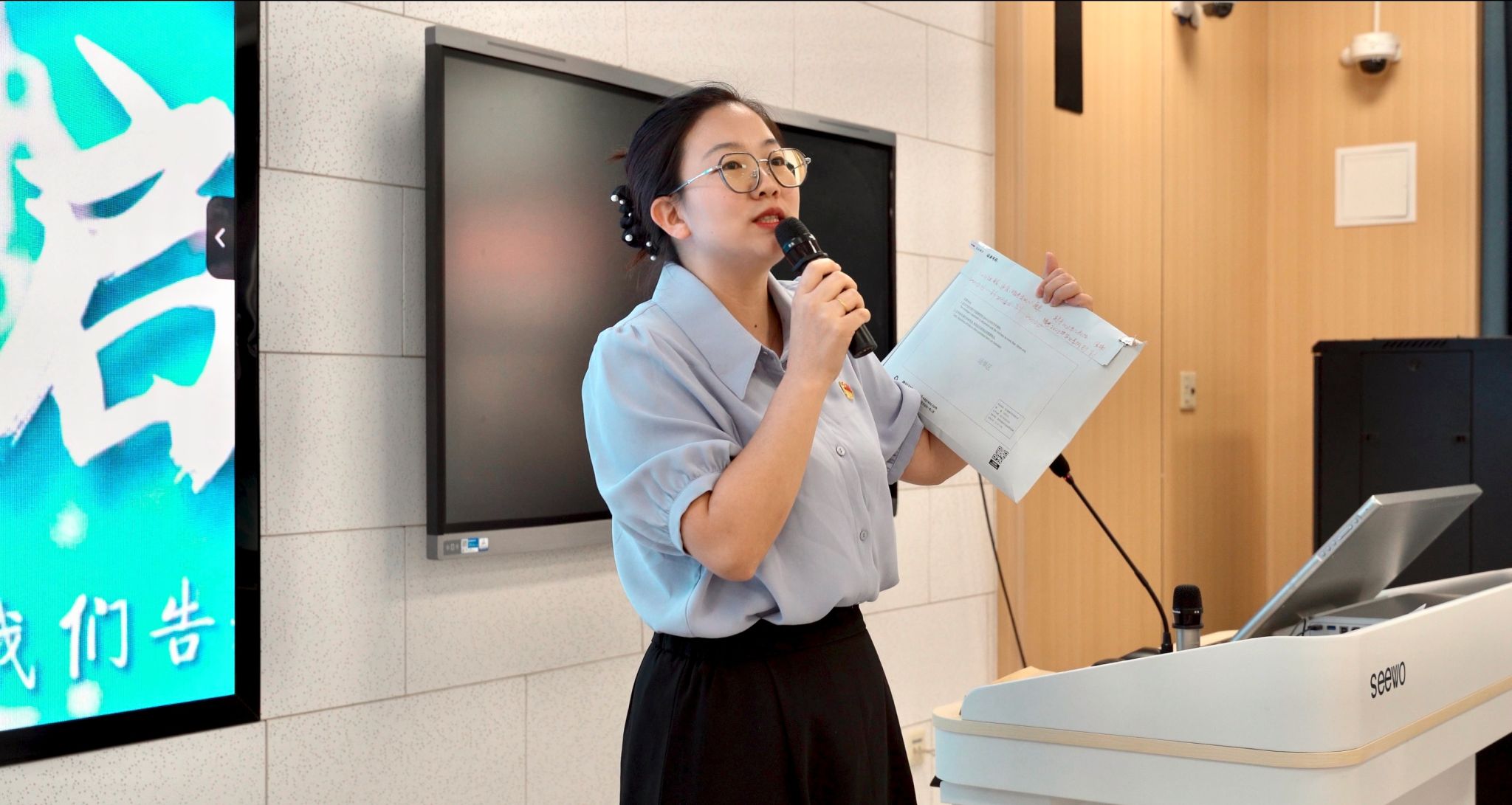 欢送会伊始,主持人深情开场,带领师生重温大学时光的点点滴滴。辅导员田嘉慧老师首先登台致辞。她深情回顾了同学们从军训、运动会到班会等共同经历的难忘瞬间,言语间饱含关怀与殷切嘱托,她勉励大家铭记师恩教诲,在未来的人生道路上自信前行。