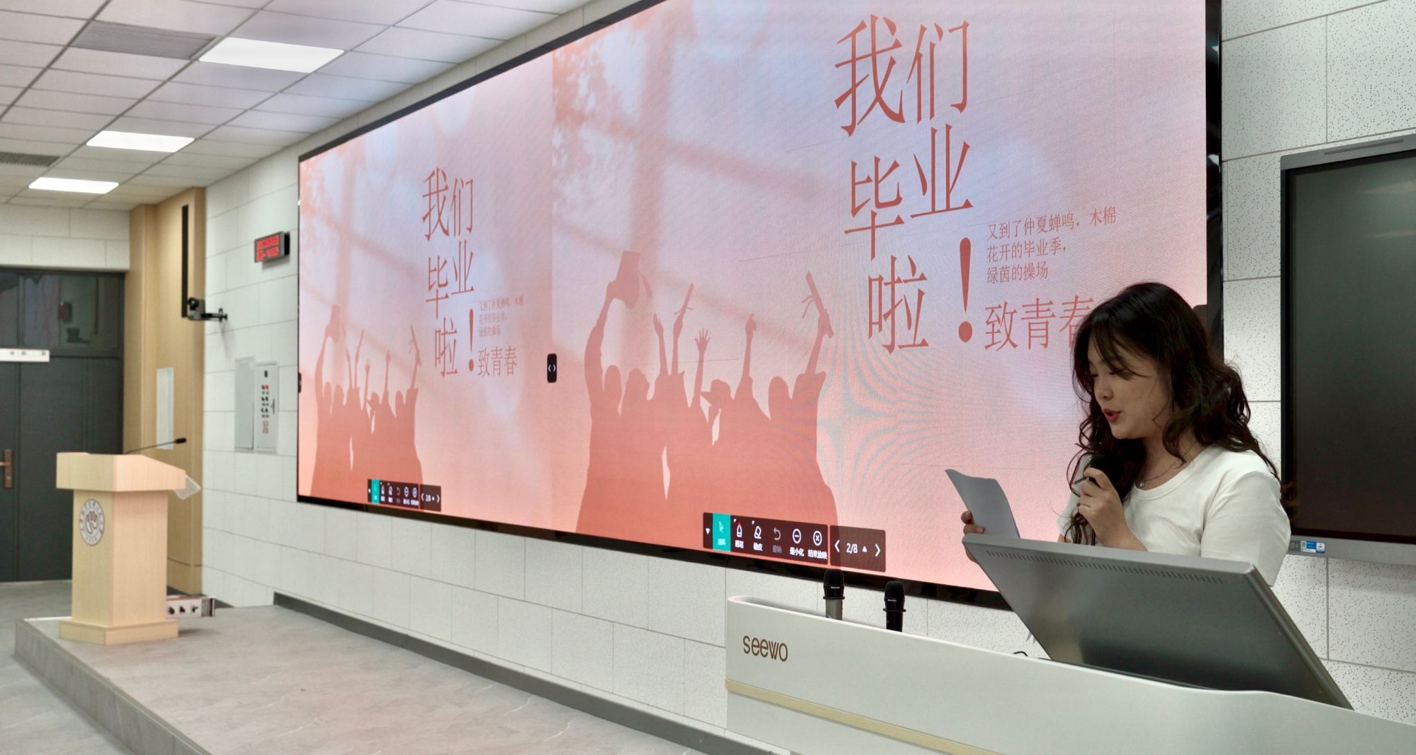 同学们精心制作的纪念视频《我们的四年》,生动展现了同学们从大一青涩懵懂到大四成熟自信的蜕变历程。烈日下的军训、课堂上的专注、活动中的欢笑······一幕幕熟悉的画面闪过,勾起了无数回忆,不少同学眼眶湿润,现场响起热烈掌声,为这段无悔的青春喝彩。