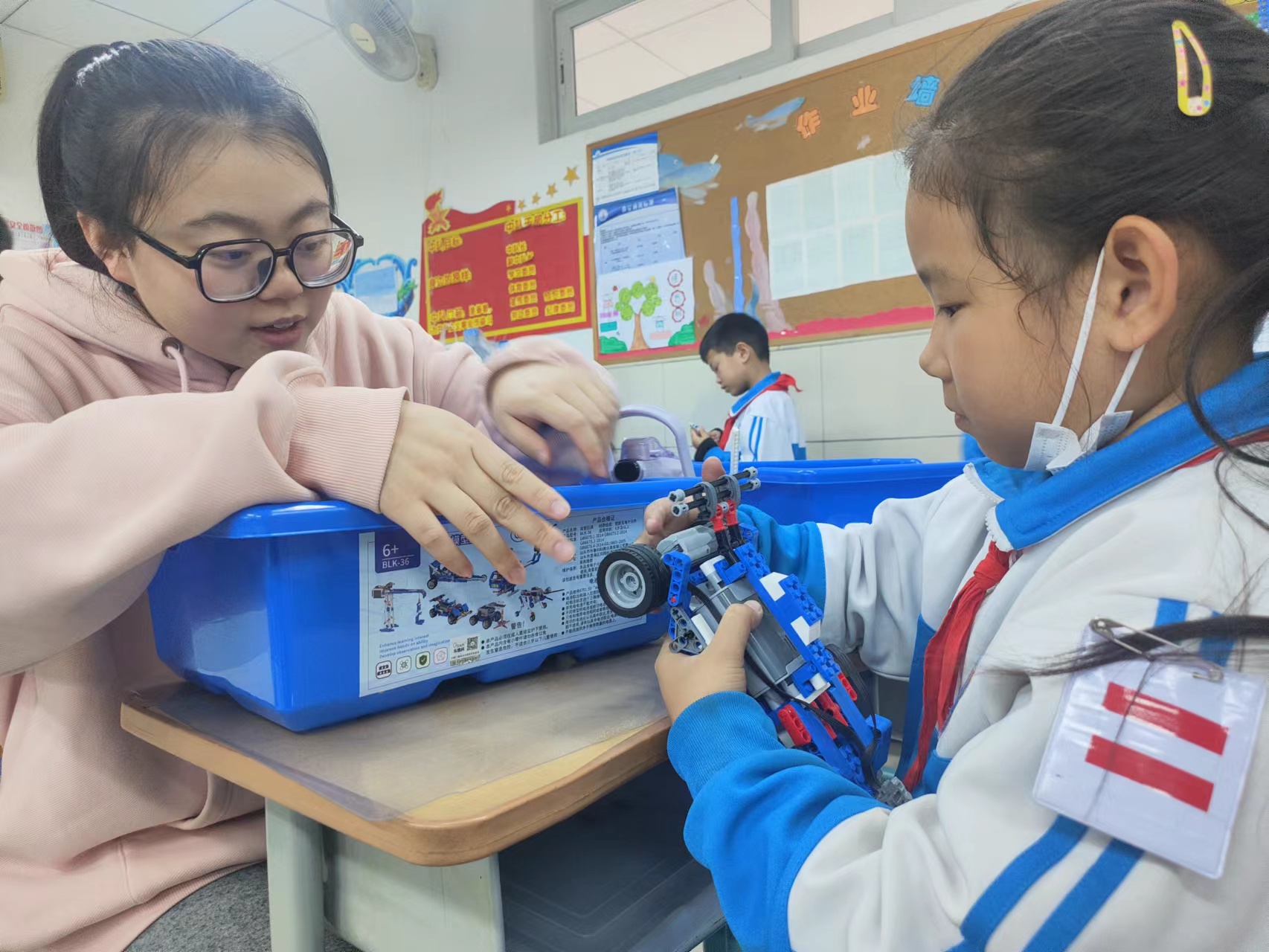 在津南区何庄子联合小学,科技讲堂小队为小学生们讲述了雷锋的故事,激发他们为人民服务的理想和热情。课堂上,志愿服务小队秉承“动手动脑、全面发展”的理念,借助简单可得的教学工具,鼓励小学生们亲自动手搭建,深入探索科学原理。课后,小学生们踊跃分享他们的上课感受,为下次上课提出改进建议。这样教学相长的教学方式,不仅培养了小学生的表达能力和团队合作能力,也促进了他们的全面发展。