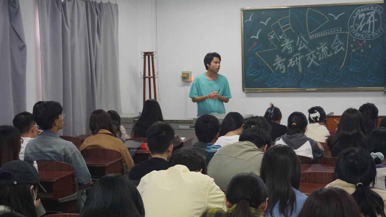 整个交流会现场激情洋溢,同学们积极踊跃、精神饱满,为有考研计划的同学们拨云去雾,提供有效的帮助。此次交流会圆满结束。会后,学院将继续强化学风建设,营造勤学多思的优良风气和氛围。