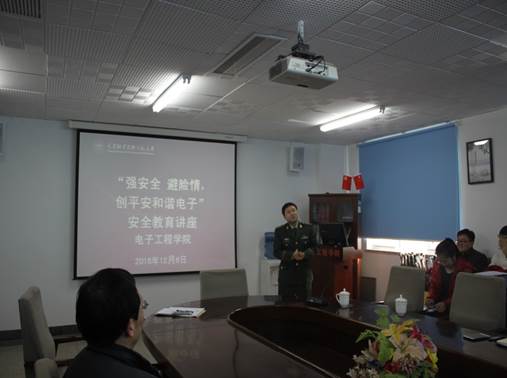 于12月6日在机电楼326举办“强安全、避险请,创平安和平电子”安全教育讲座,并组织消防疏散演习活动,学院全体教师参加。此次活动得到了学校保卫处、消防津南支队双港中队的大力支持。