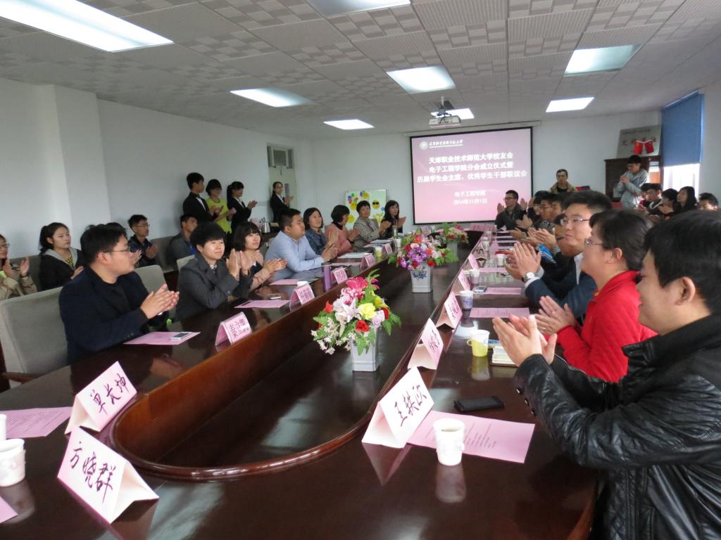在随后的联谊会上,校友们共同观看了学院团总支精心制作的一段视频,视频中回忆了校友们在校期间的点点滴滴,场面温馨感人;未能到场的校友也通过视频送上祝福,恭贺我校建校35周年和电子学院校友分会的成立。互动环节中,校友们通过视频中的模拟场景重温了自己在学校的日子,畅叙校友情、师生情、母校情,并与大家分享了那些年最难忘的故事。最后,同学们还就“校园爱情”、“招聘面试”、“第一桶金”等问题与各位校友进行了互动交流,校友们希望同学们能够珍惜现在的大学生活,拥有自己精彩纷呈的青春。联谊会在温馨、快乐的氛围中圆满结束。