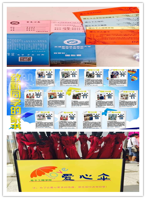 4、学院还设计制作了致新生的暖心家书,各班班主任老师与助理班主任共同深情寄语大一新生,并以班级为家提出了励志家训,增强新生的归属感和“爱班荣班”的意识。同时,学院还为每位新生家长发放了暖心囊,以爱心卡的形式将“成绩查询、下编级、学位授予、违纪”等与学生息息相关的学校有关管理规定悉数告知,希望家长在熟知学校政策的同时与学院共同做好对新生大学期间的监督管理;此外,在新生办理报到手续时,工作人员还为每位新生身上粘贴了学院院徽,让新生们感受到作为一名电子人的骄傲与荣耀。