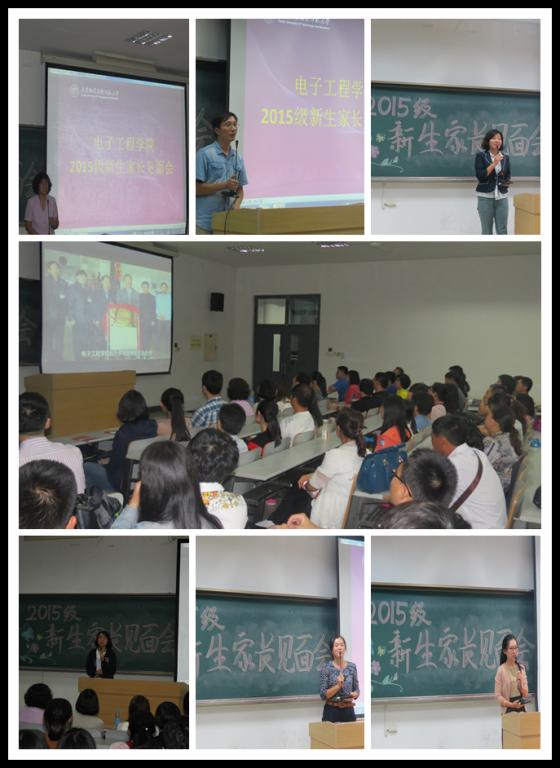 在B308召开2015级新生家长见面会。会上,新生和家长们一同观看了学院宣传片。党委书记李春华简单介绍了学校的整体发展情况,对学院的专业建设、课程设置、师资队伍等方面进行了说明,并从自律意识、情感问题、人际关系、安全管理、能力锻炼等方面与家长们进行了深入交流,她希望今后家长和学院密切配合、保持沟通,学生、家长、学院三方联动,共同帮助学生成长成才。2015级新生班主任老师也分别从“自主学习”、“安全教育”、“遵守校规校纪”的角度对新生提出了具体要求与希望。现任院学生会主席微电1201班韩达同学与新生们分享了他的成长历程,勉励大家珍惜大学时光,找好自身定位,收获自己精彩的大学生活。在互动环节中,学院领导和老师们就家长咨询的有关问题进行了耐心细致地解答。