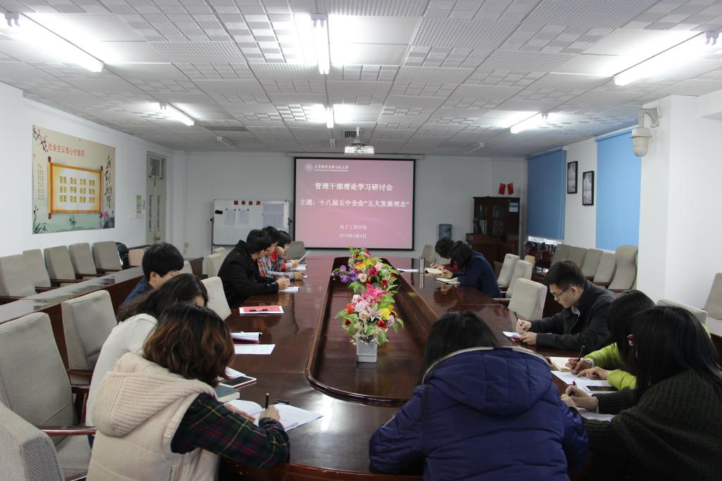 在机电楼326会议室召开管理干部理论学习研讨会。院党委书记李春华、副书记刘娜和综合办公室全体管理人员一同参加了研讨会。
