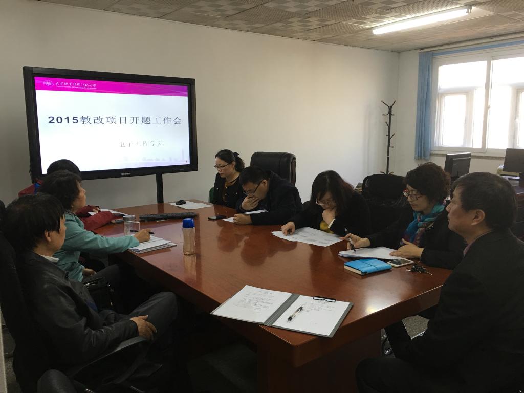 在机电楼329召开2015校级教学质量改革项目开题工作会议。学院2015年校级一般教改项目负责人、学院专家组参加了会议。会议由教学副院长助理李雅静主持。