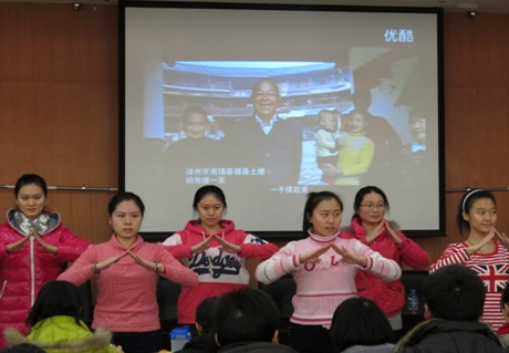活动首先由天津理工大学聋人工学院的师生为全体党员进行了《国家》的手语表演。然后由天津城建学院、腐漫画