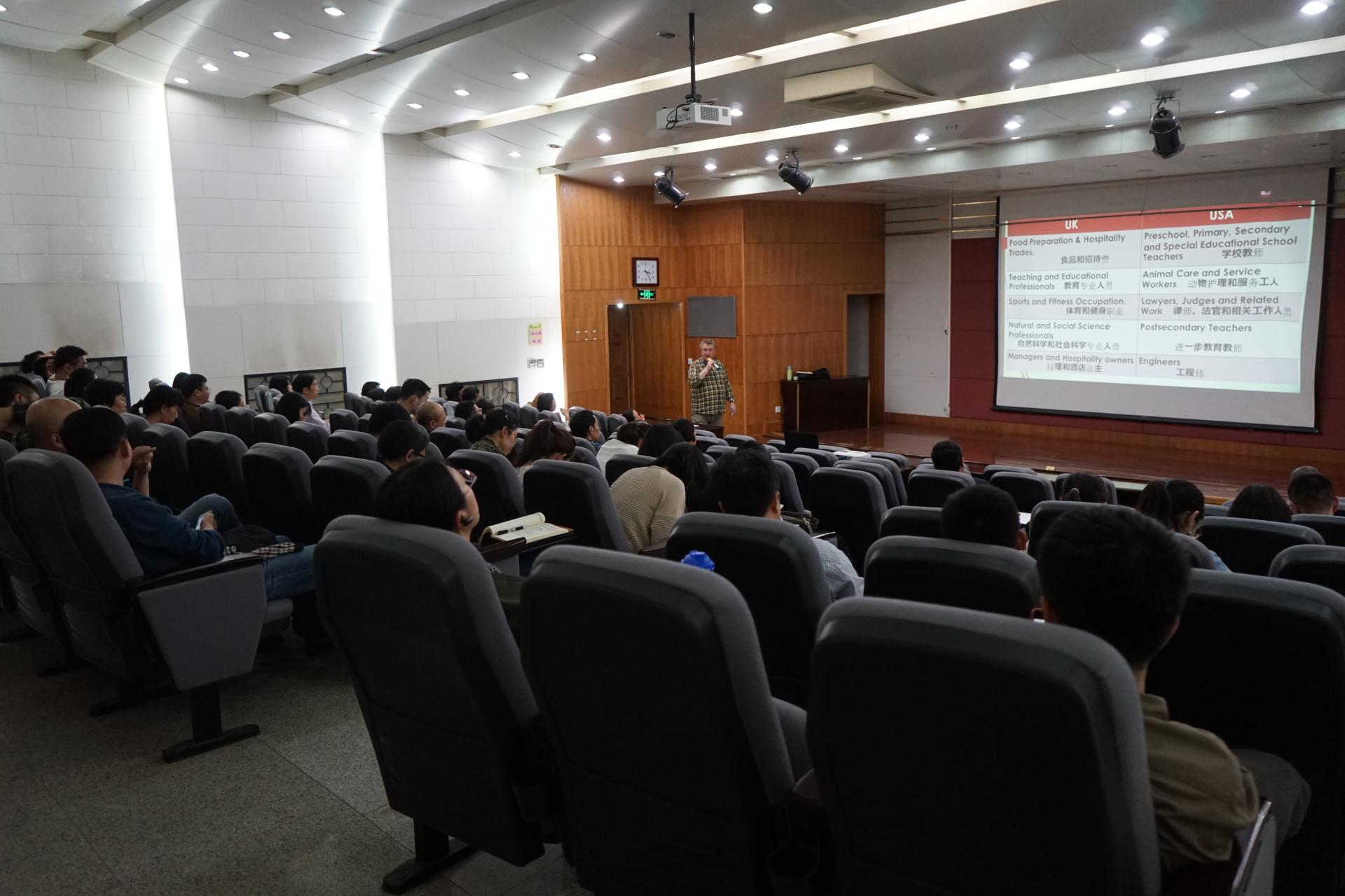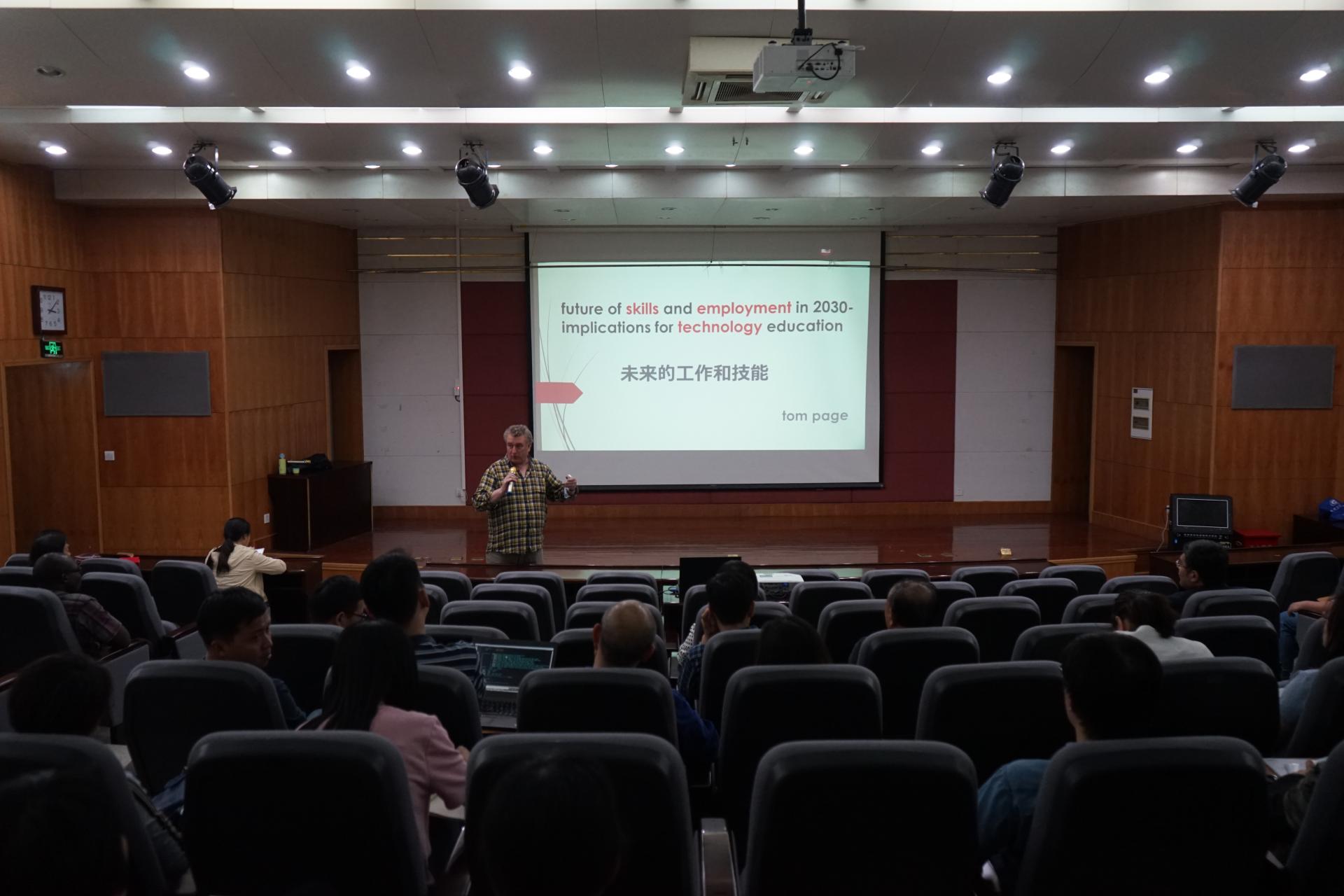 在图书馆一楼报告厅举办题为《未来的工作和技能》(futureskills and employment-implications for technology education)的学术报告,邀请了中外合作办学外籍教师原英国诺丁汉特伦特大学教授,博士生导师Tom Page担任本次报告主讲人,学院教授李莉主持。