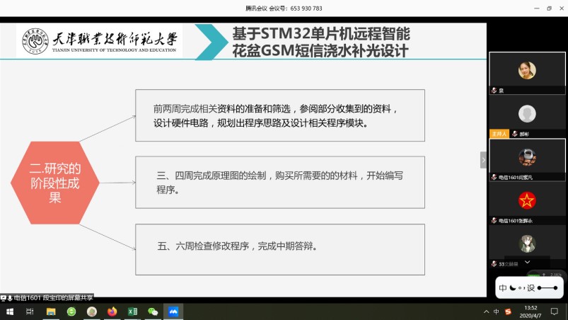 在线上开展毕业设计中期检查,490余名学生共分成15组通过腾讯会议汇报了毕业设计开题以来所做的工作、取得的阶段性进展以及下一步工作计划。