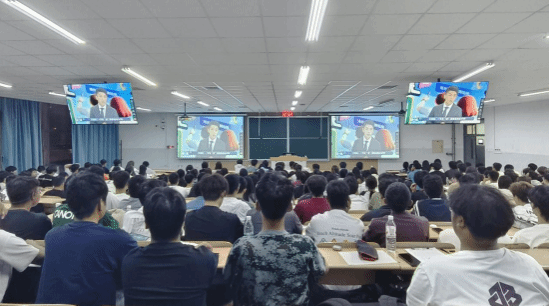 在爱国主义教育环节,学院精心组织2025级新生集中观看纪念中国人民抗日战争暨世界反法西斯战争胜利80周年大会,引导新生感悟家国责任与时代使命;同步组织好校歌与红色歌曲学唱活动,帮助新生了解校史底蕴、传承红色基因,强化对学院与学校的认同感、归属感。