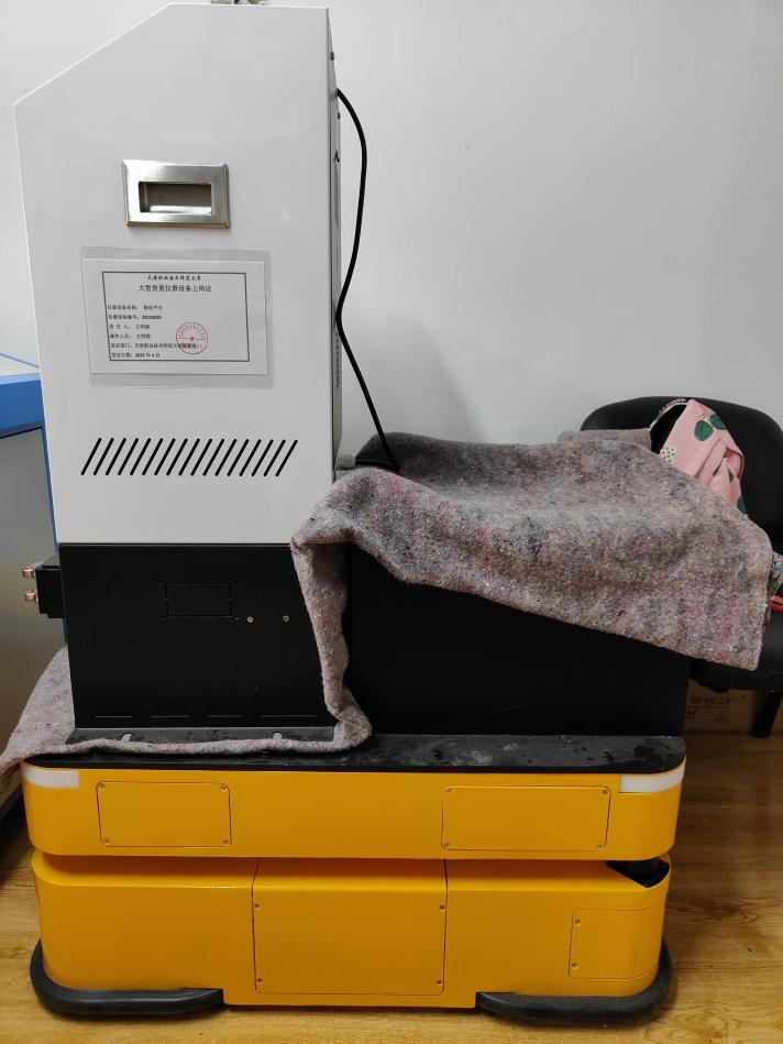 功能:采用舵轮驱动,运动灵活;平台可定制各种支架;采用SLAM激光导航;采用图像定位传感器,能够识别颜色轨道、位置码带;最大行驶速度达60m/min;停车重复精度为±10mm。